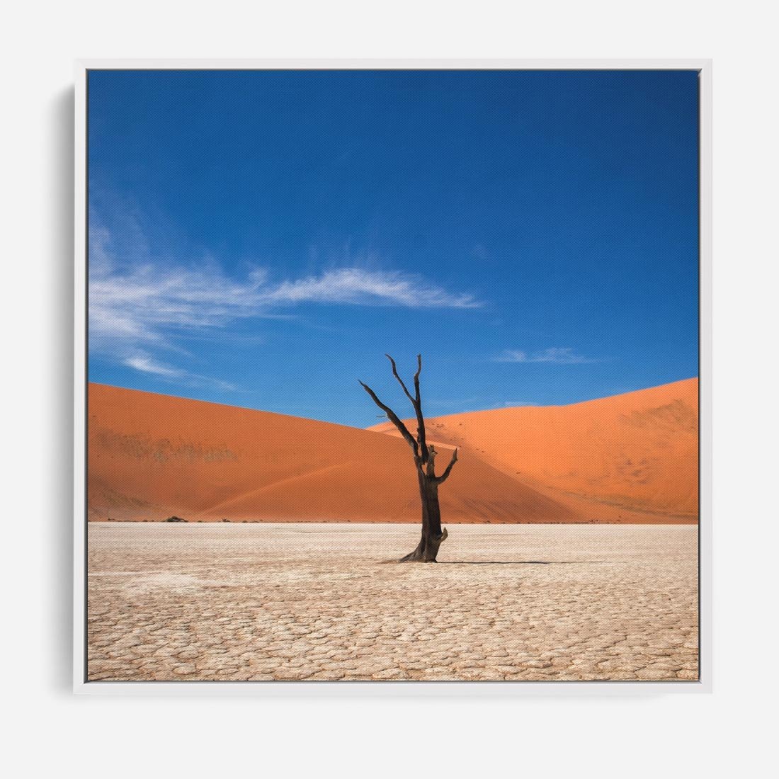 Poczuj magię pustyni i suche drzewo, odbijające słońce, za pomocą tego obrazu. Dodaj do swojego wnętrza unikalny element natury i ożyw przestrzeń.