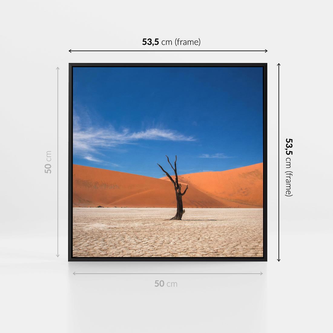 Obraz w ramie 50x50 - Słońce i Suche Drzewo - pustynia, suche - rama czarna