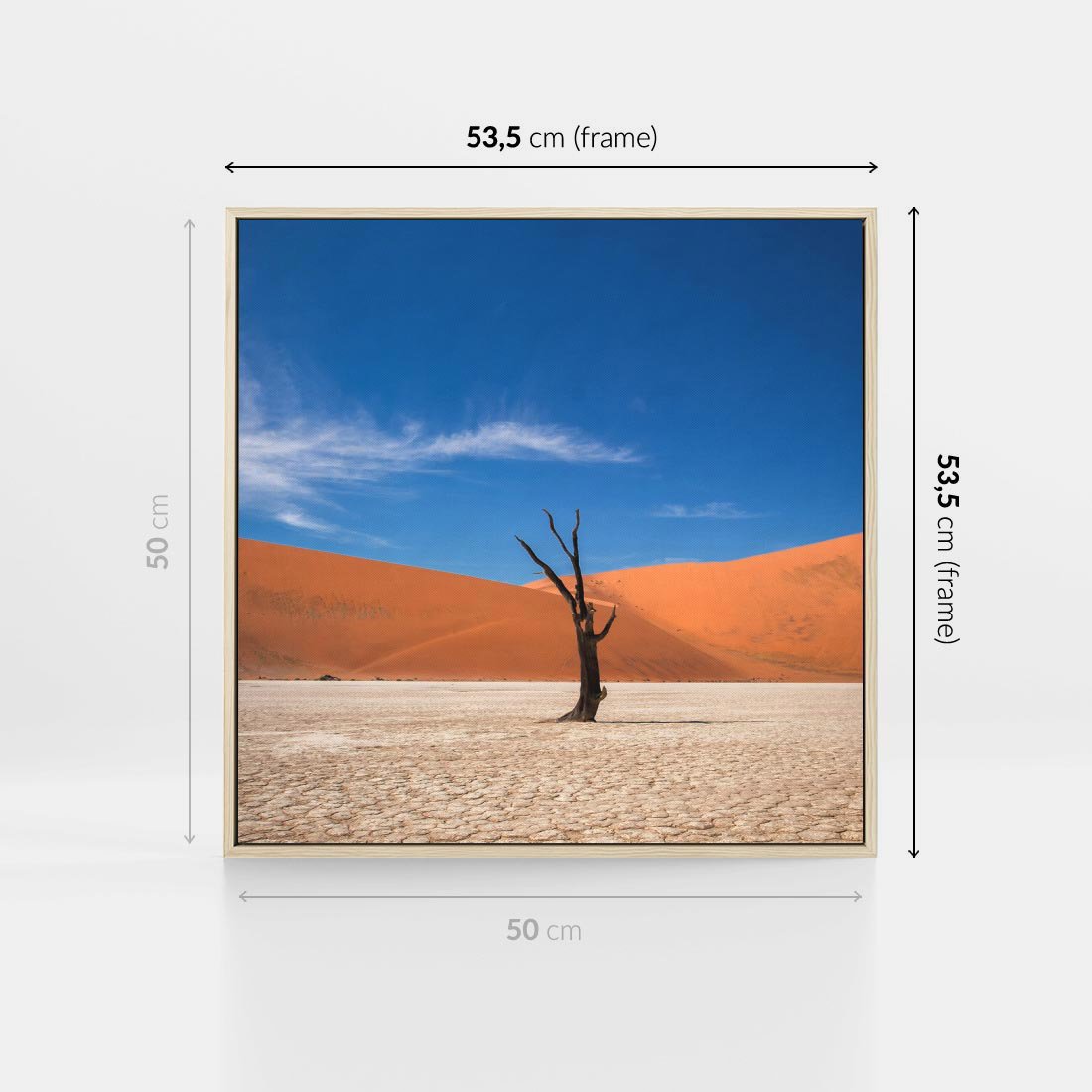Poczuj magię pustyni i suche drzewo, odbijające słońce, za pomocą tego obrazu. Dodaj do swojego wnętrza unikalny element natury i ożyw przestrzeń.