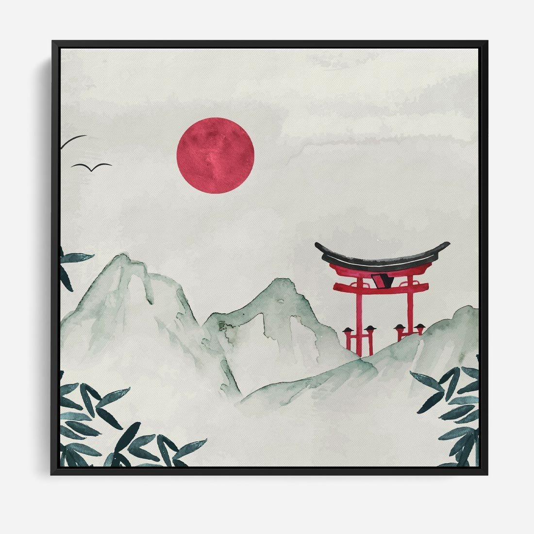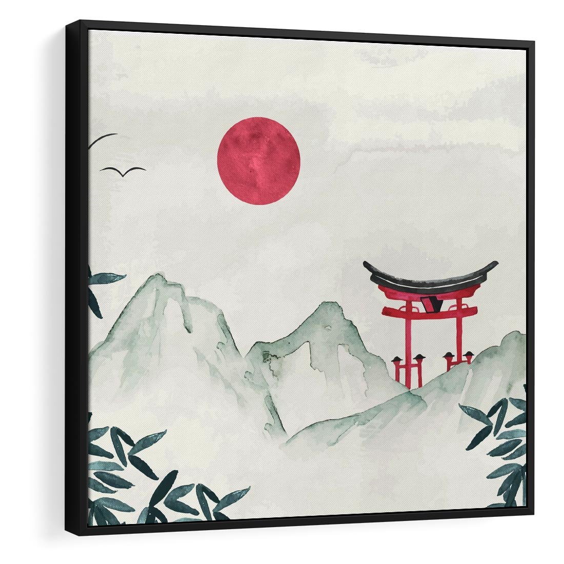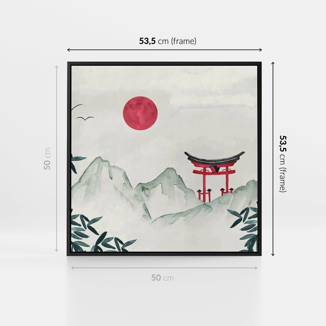 Obraz w ramie 50x50 - Słońce nad Górami - japoński krajobraz, góry - rama czarna