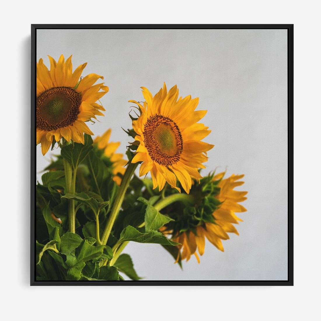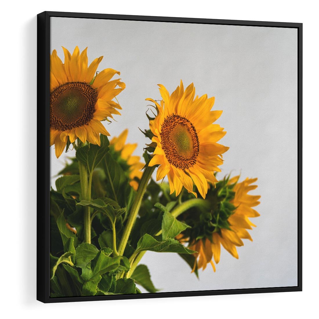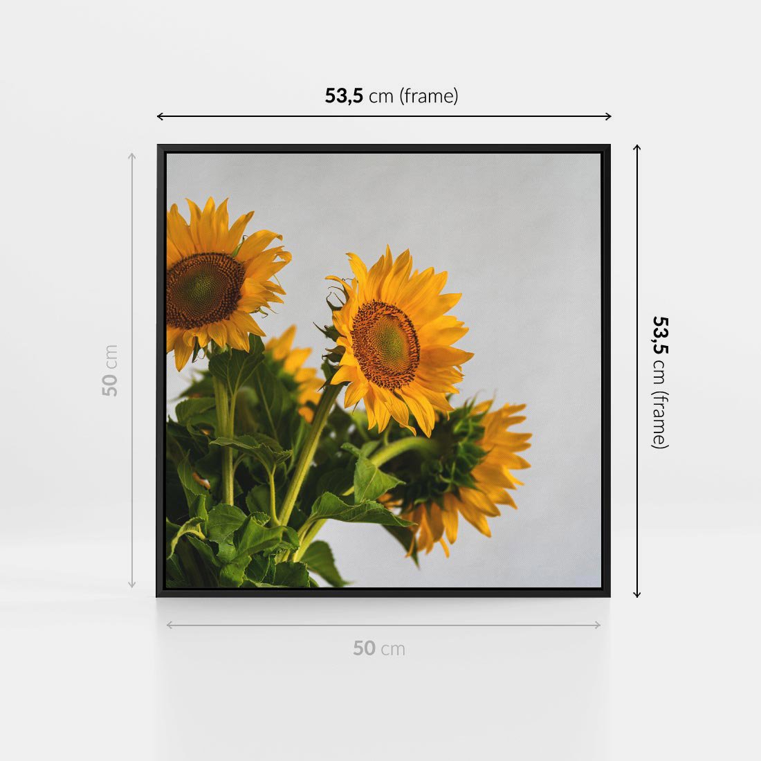Obraz w ramie 50x50 - Słoneczna Radość - fotografia, żółte słoneczniki - rama czarna