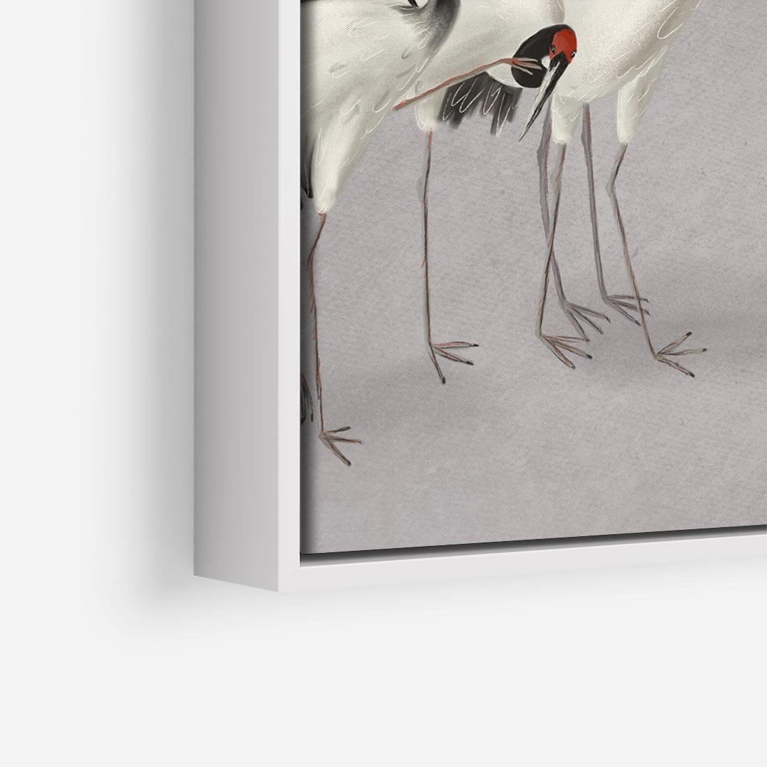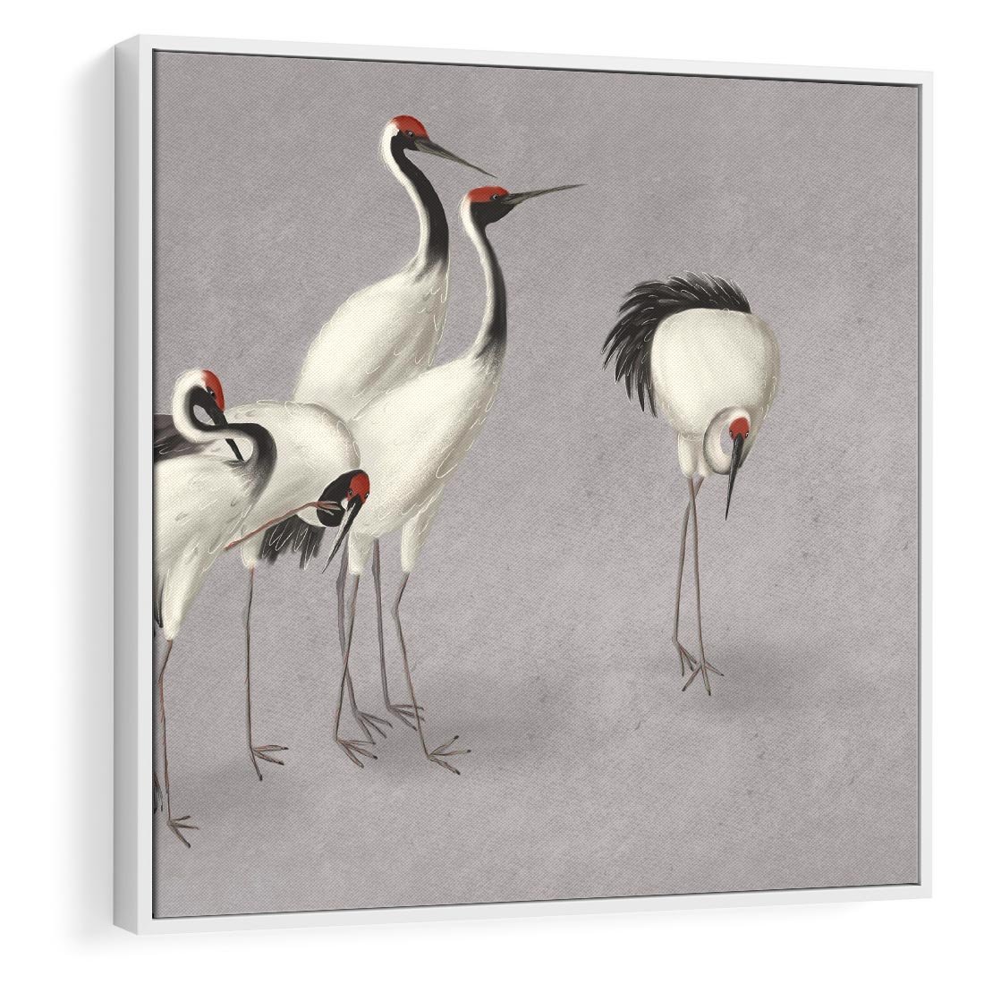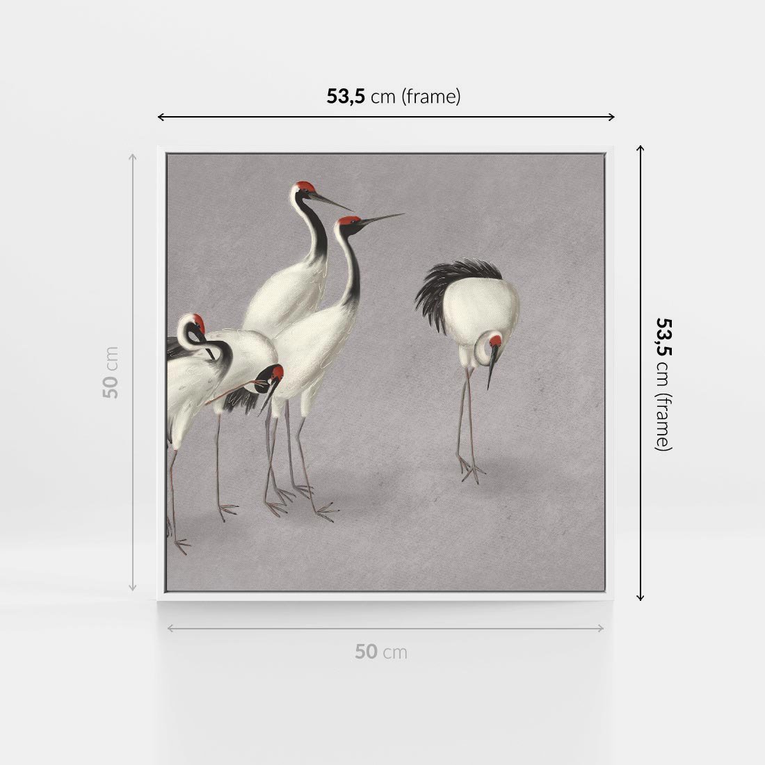 Obraz w ramie 50x50 - Spojrzenie wstecz w pędzlu - szkic rysunek, japońskie żurawie - rama biała
