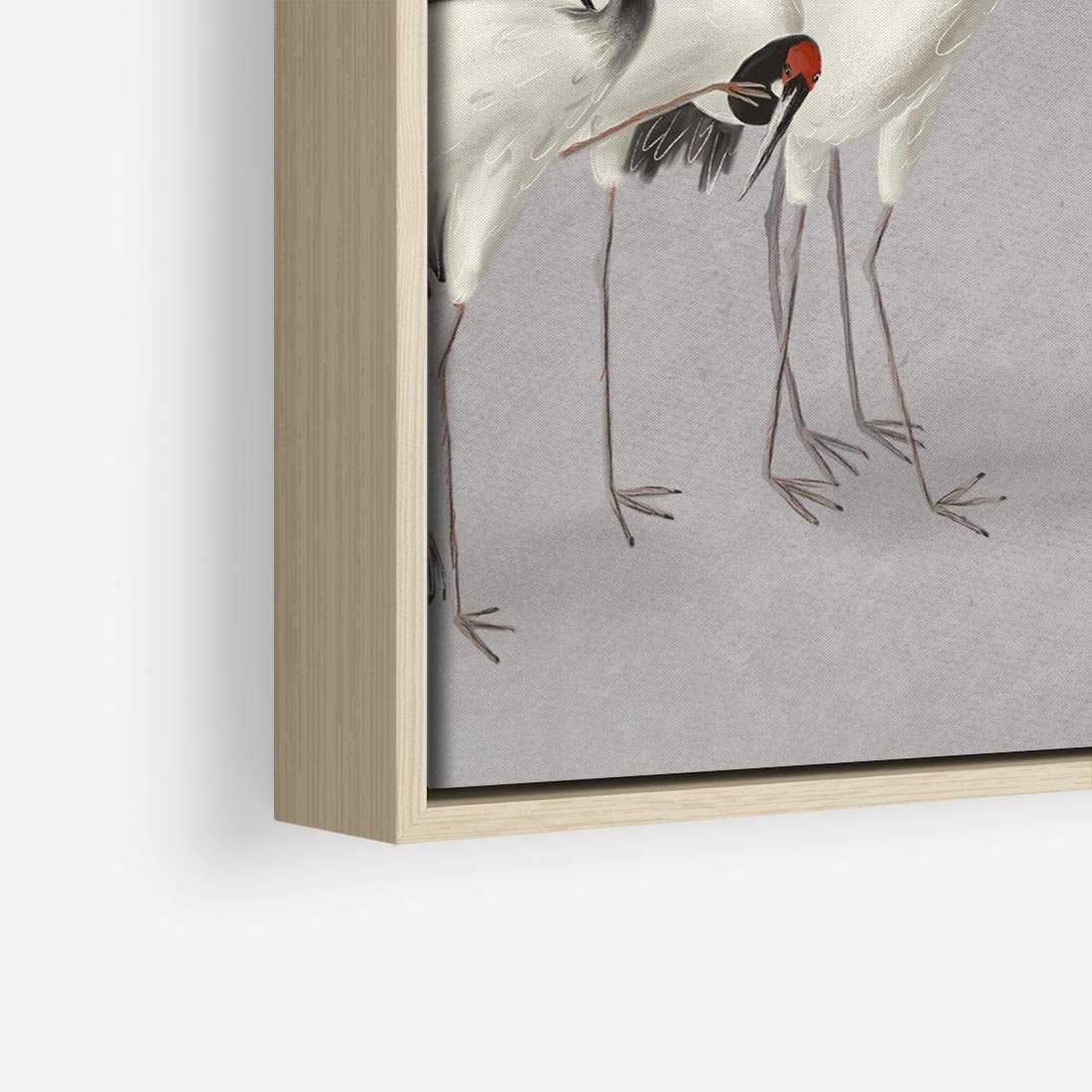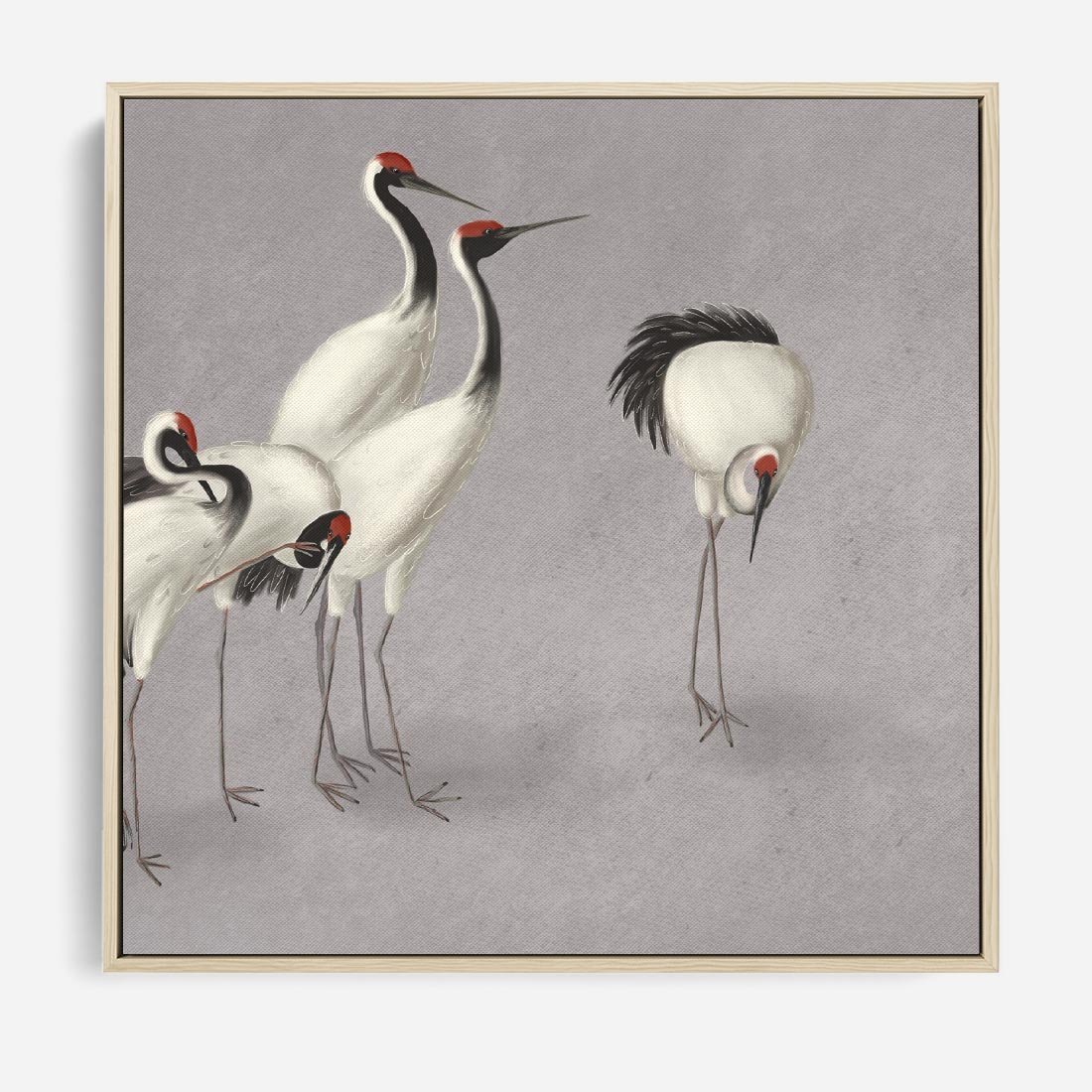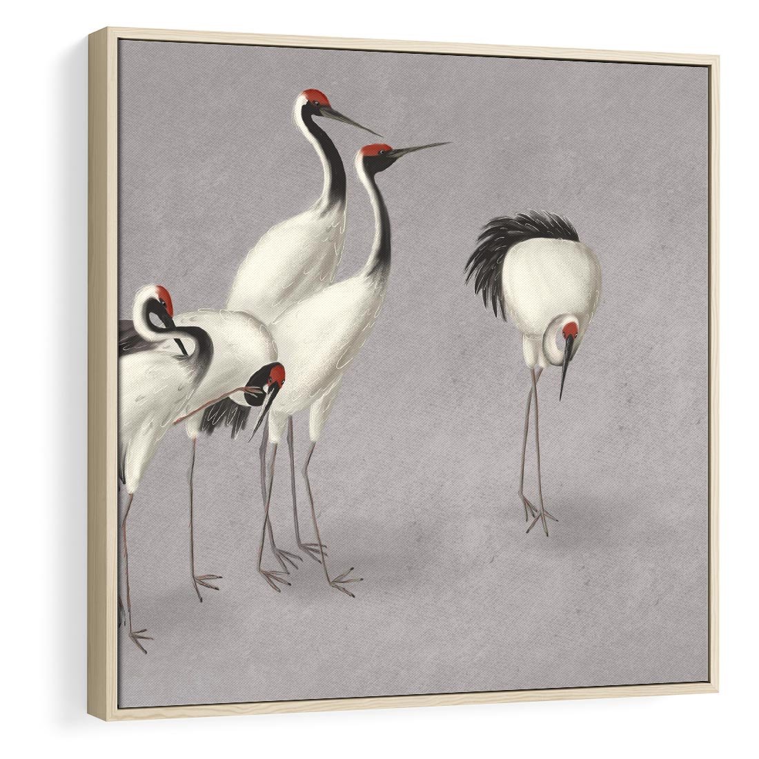 Obraz w ramie 50x50 - Spojrzenie wstecz w pędzlu - szkic rysunek, japońskie żurawie - rama drewno