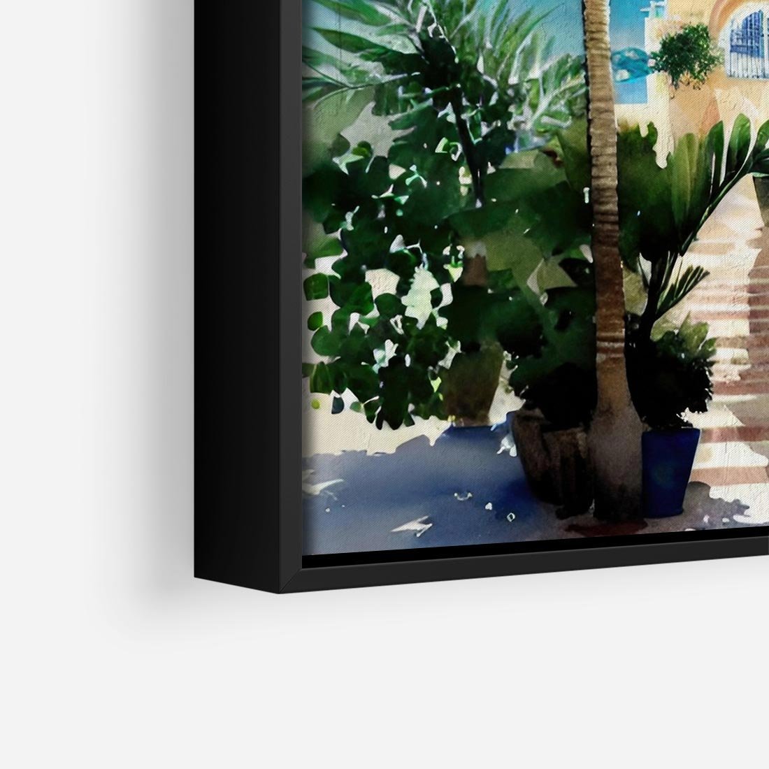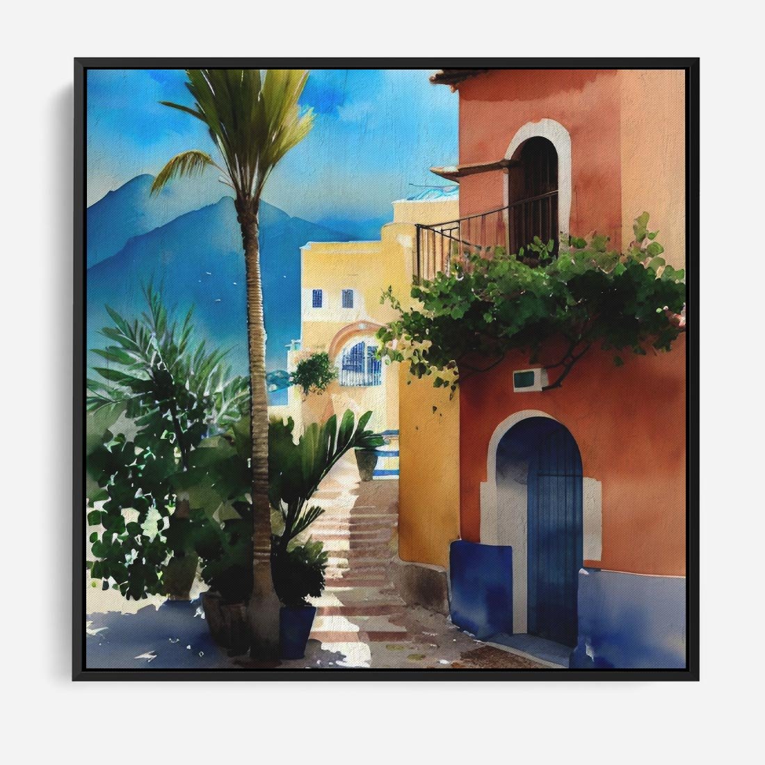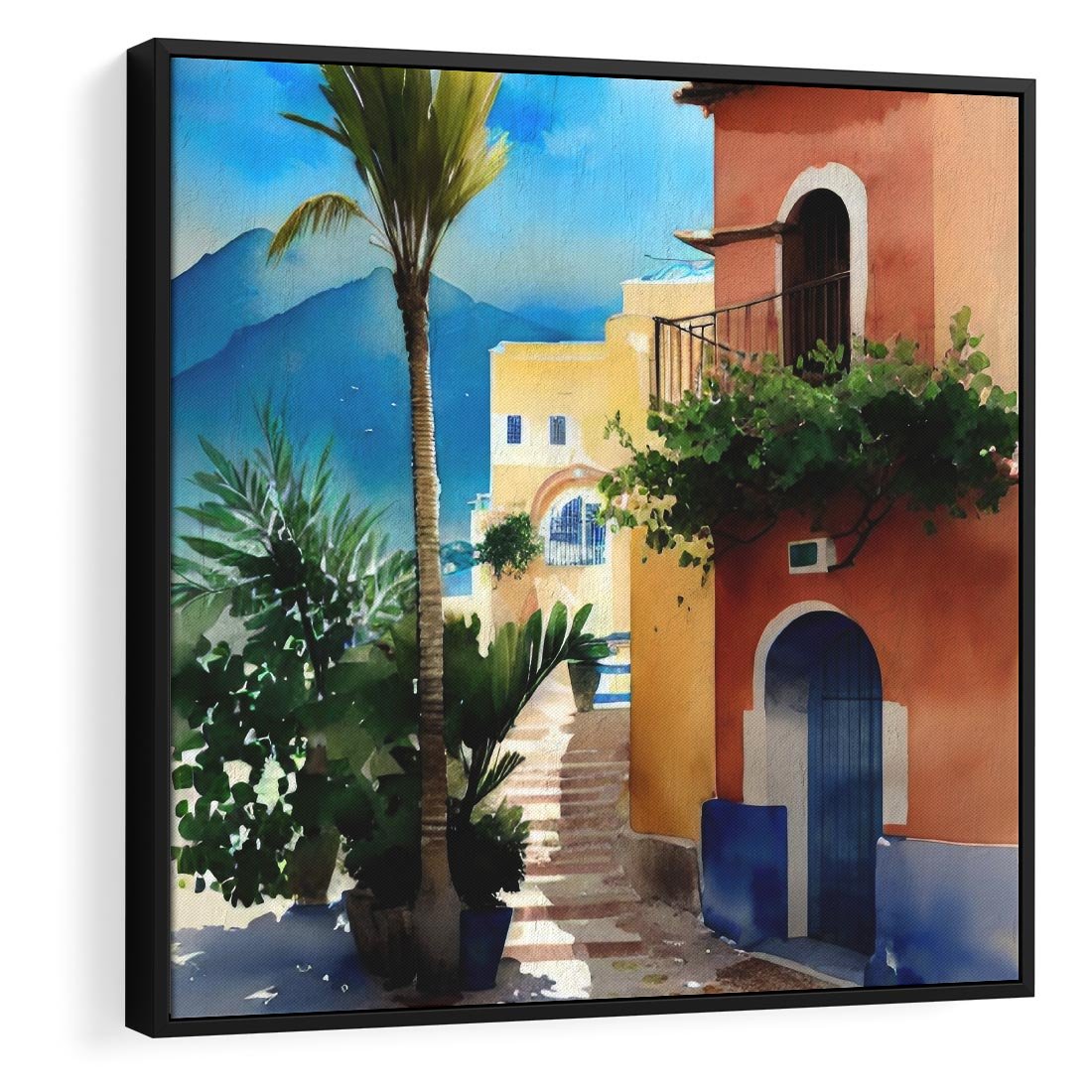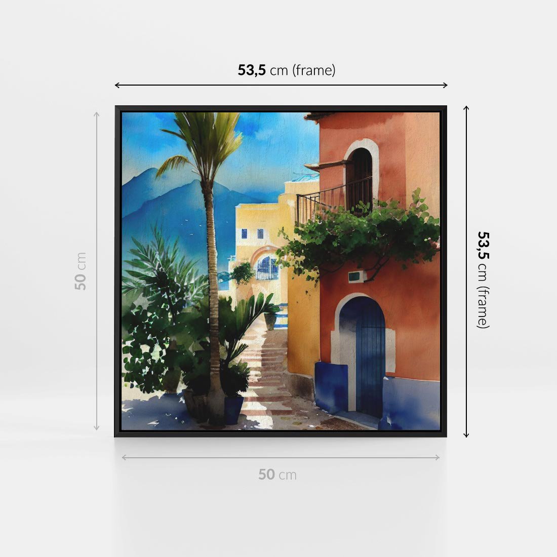 Obraz w ramie 50x50 - Spokój Miasta nad Morzem - akwarela, sródziemnomorski klimat - rama czarna