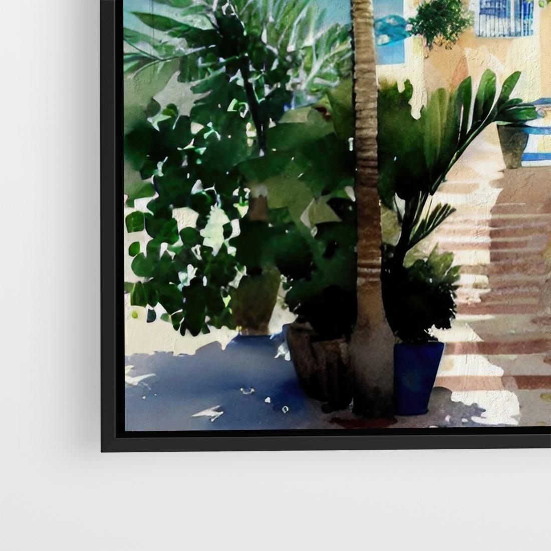 Ta akwarela przenosi nas w urokliwy śródziemnomorski klimat. Na obrazie widzimy urokliwą uliczkę, otoczoną pięknymi budynkami. Palmy dodają temu pejzażowi charakterystycznego tropikalnego akcentu. Technika akwareli nadaje obrazowi delikatność i miękkość, podkreślając przyjemną atmosferę tego miejsca. To dzieło sztuki doskonale oddaje urok i spokój typowy dla miast i miejscowości nad Morzem Śródziemnym. Może być idealnym dodatkiem do wnętrza, które pragnie przenieść atmosferę tego regionu do swojego otoczenia.