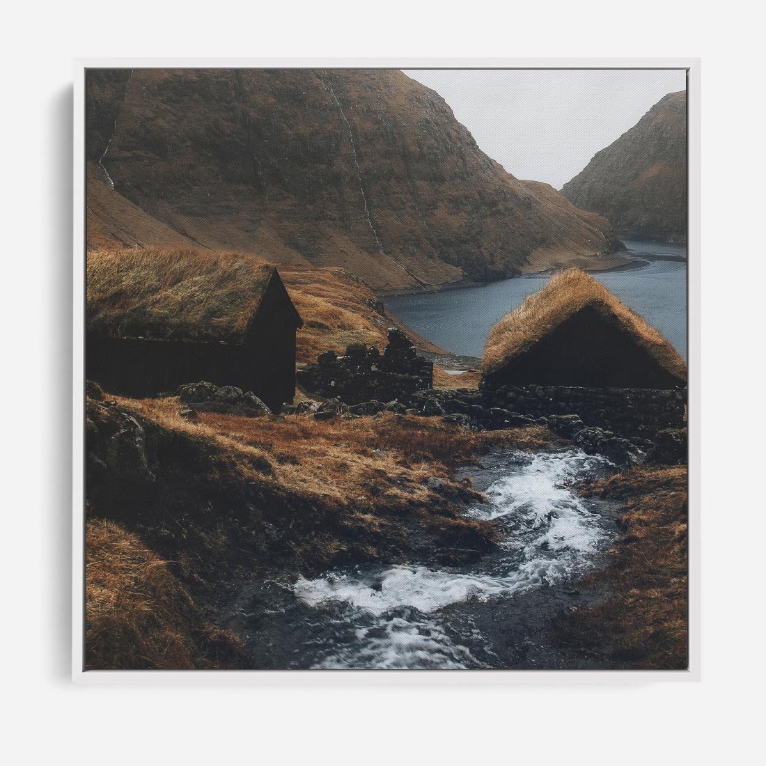 Obraz w ramie 50x50 - Spokój Natury - skandynawski, pejzaż - rama biała