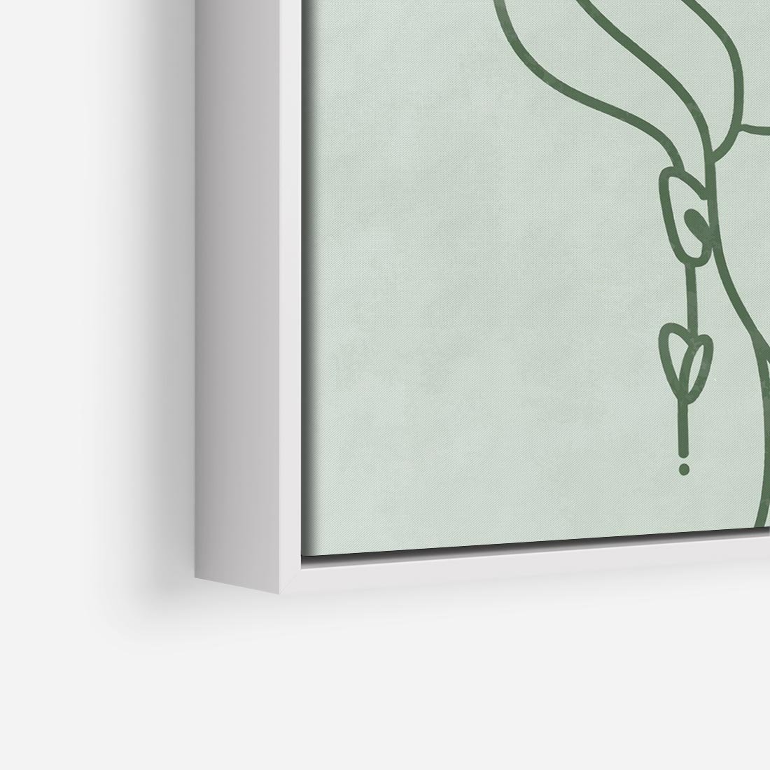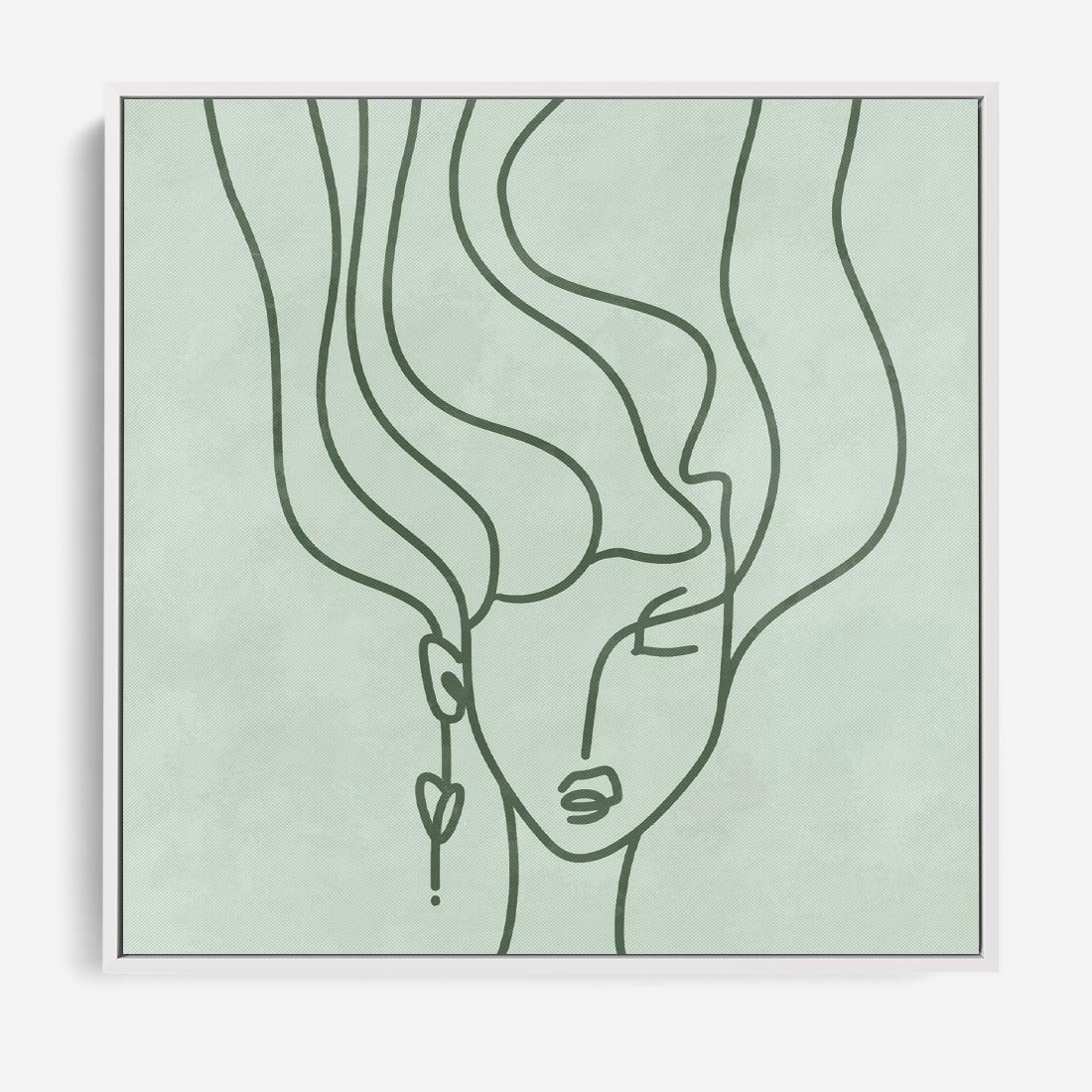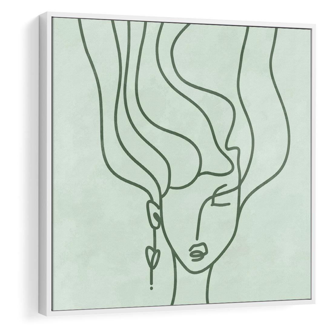 Abstrakcyjny zielony szkic ukazujący kobietę z długimi włosami tworzy wyjątkowy wizualny efekt. Delikatność zielonych linii nadaje kompozycji harmonii, a jednocześnie zachowuje abstrakcyjny charakter, co może ciekawie uzupełnić różne rodzaje wnętrz.