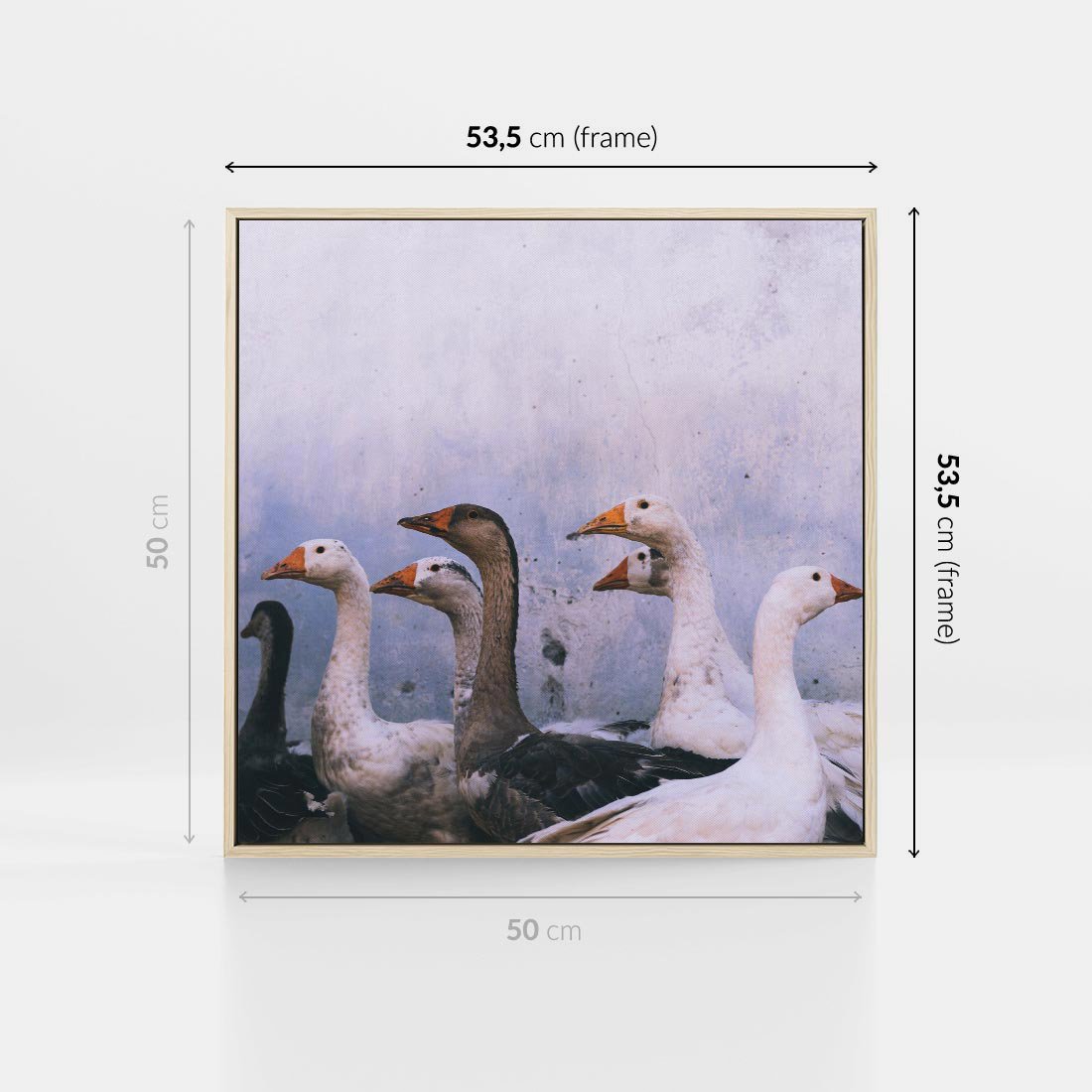 Obraz w ramie 50x50 - Spotkanie Wśród Piór - uchwycony moment, fotografia - rama drewno