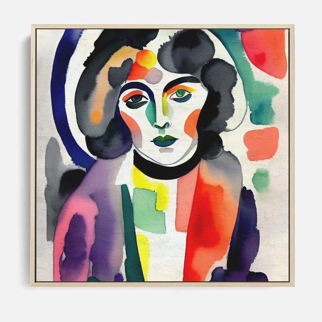 Obraz w ramie 50x50 - Subtelne Akwarelowe Ulotności - abstrakcyjny akwarelowy portret kobiety, rozmyte farby - rama drewno