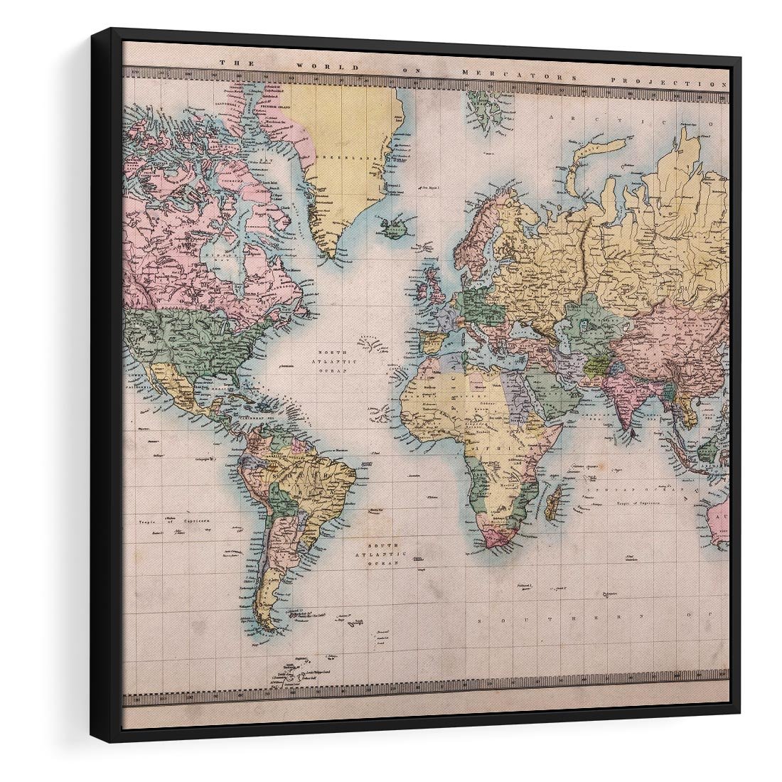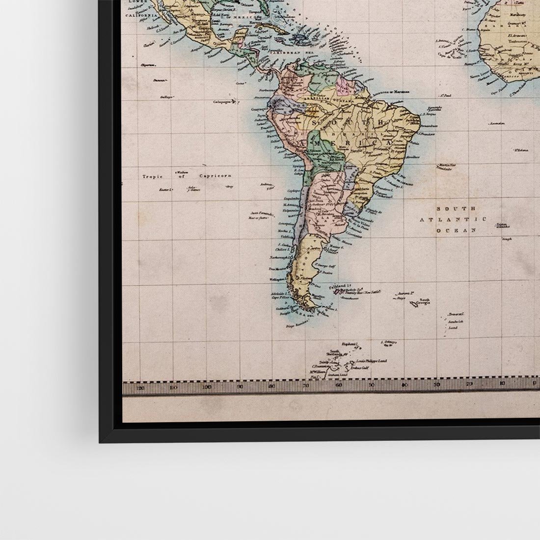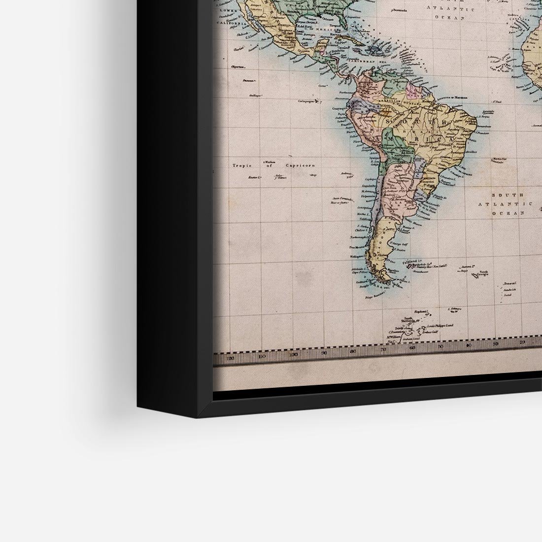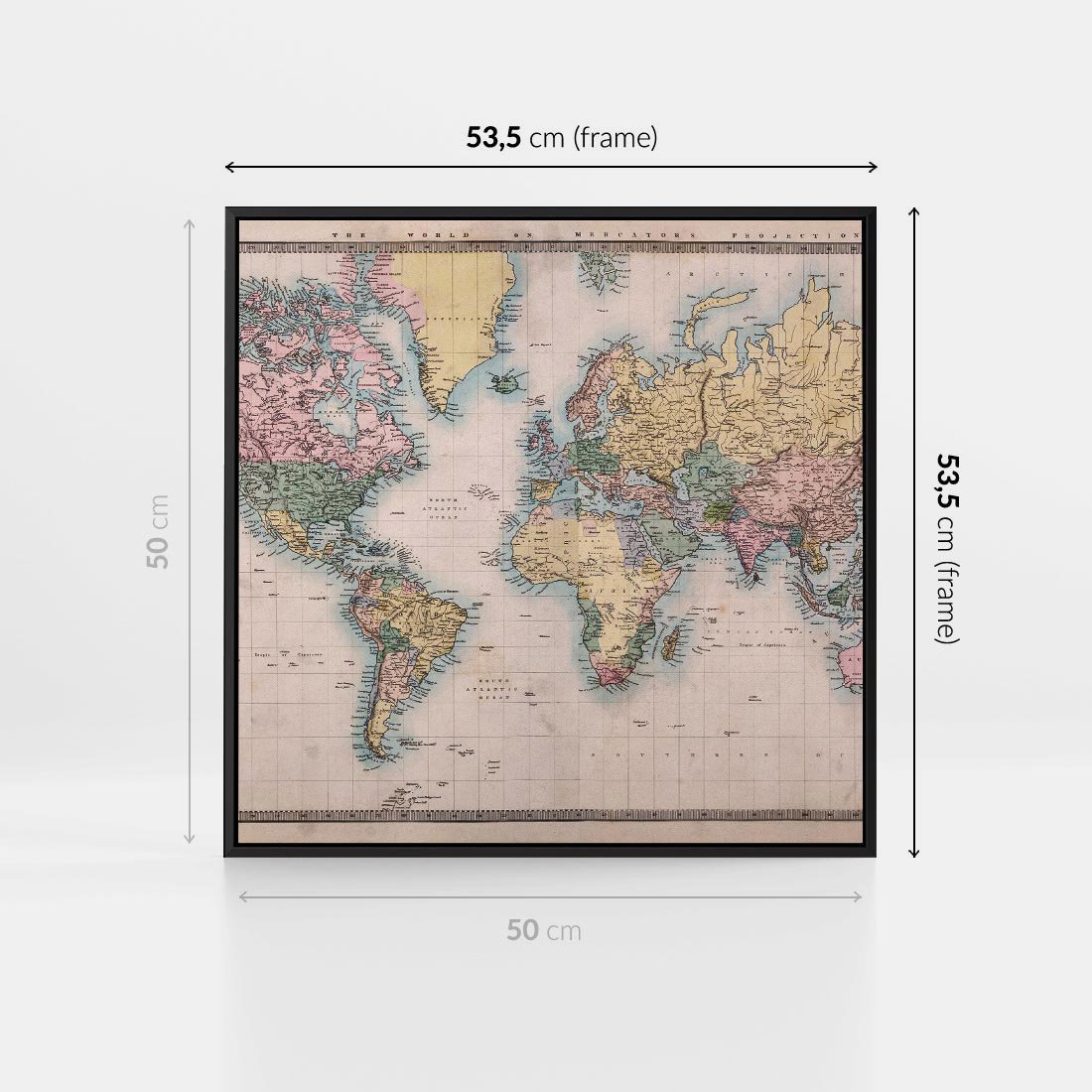 Obraz w ramie 50x50 - Światło Przeszłości - retro mapa świata, mapa - rama czarna
