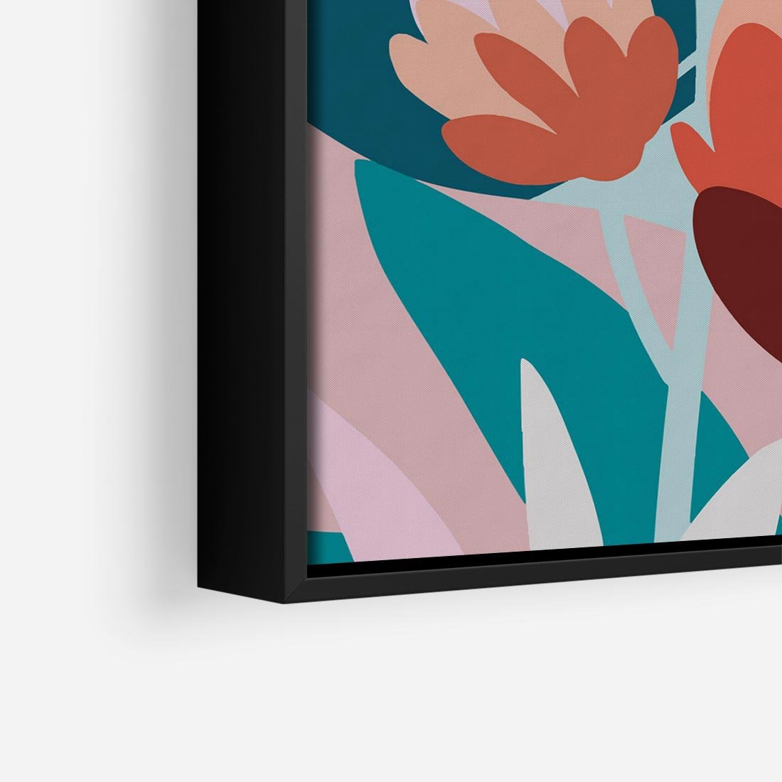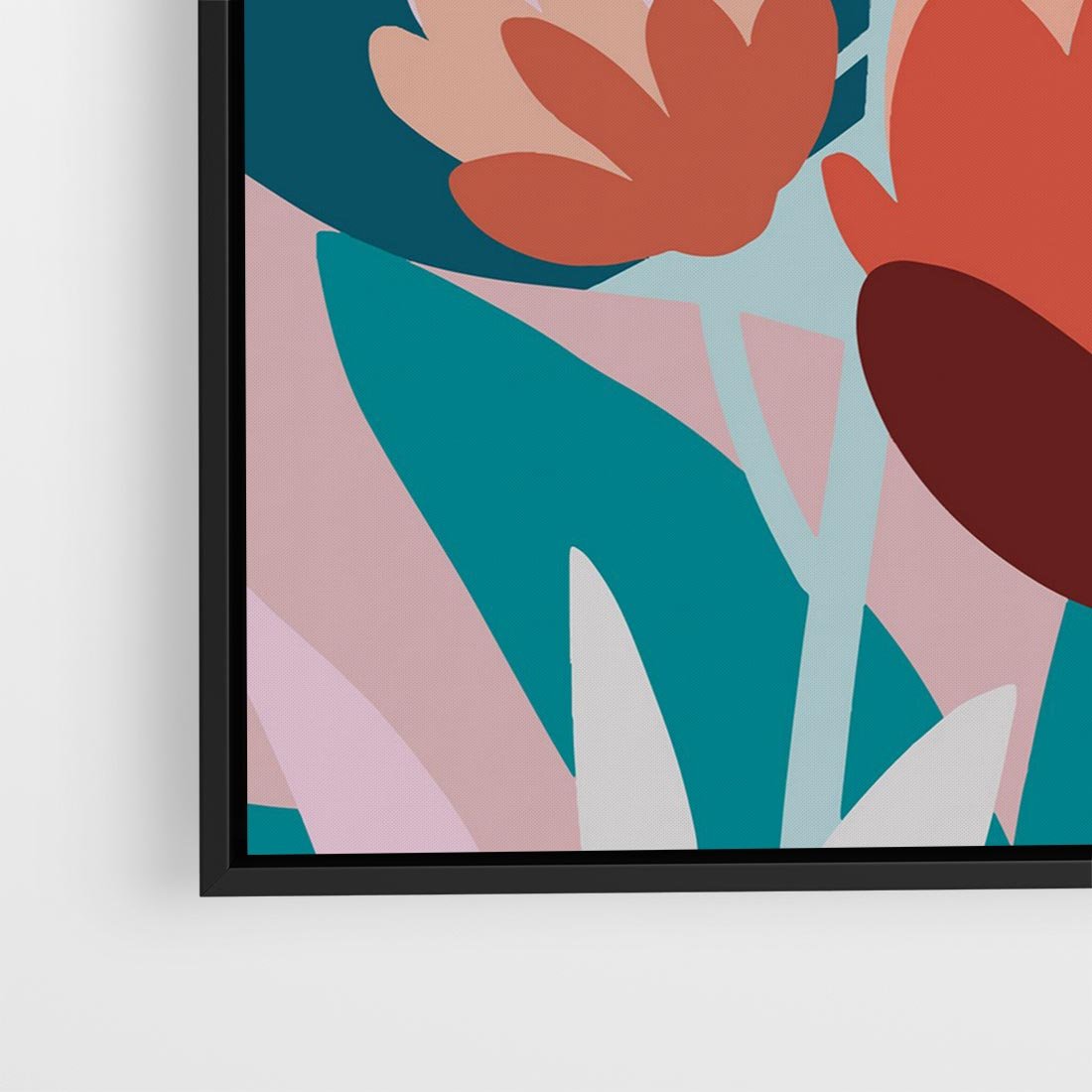 Obraz w ramie 50x50 - Symfonia Kwiatów - abstrakcyjna kompozycja kwiatowych form, kolor zgaszone - rama czarna