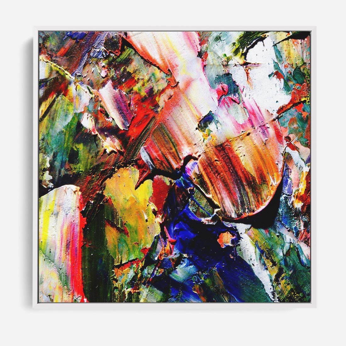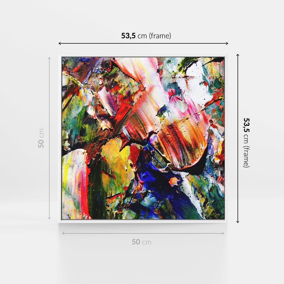 Obraz w ramie 50x50 - Szalejące ognie kolorów - abstrakcja, farby olejne - rama biała