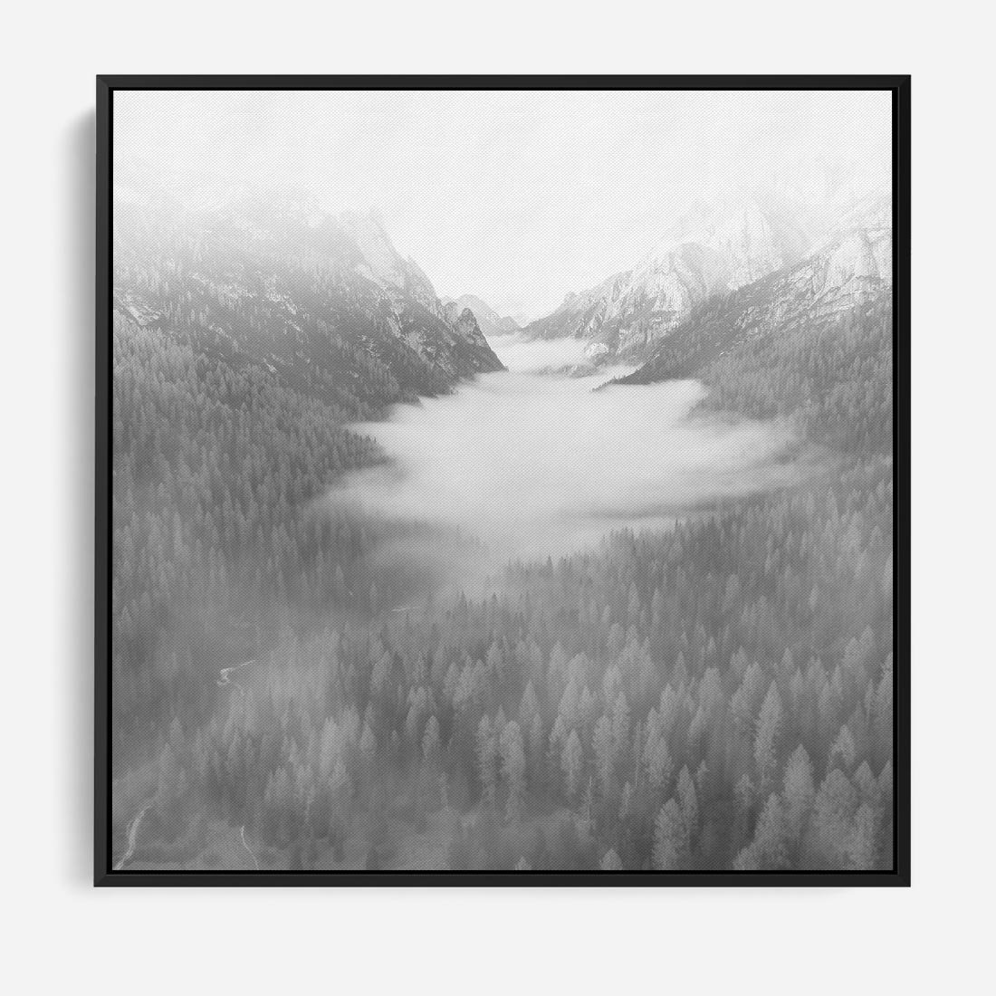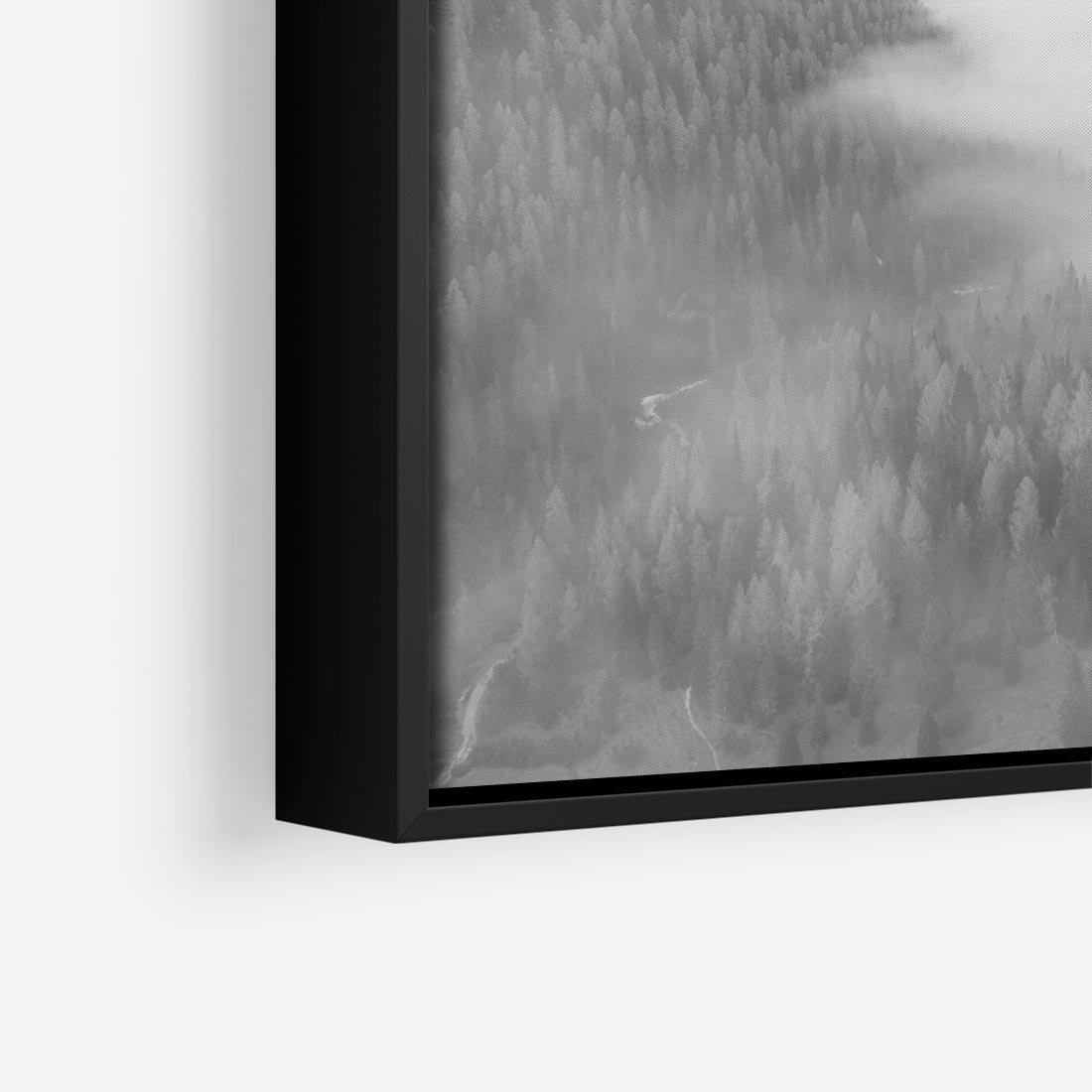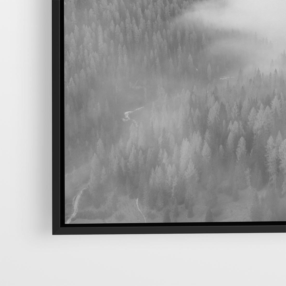 Ten obraz przedstawia uroczy i tajemniczy pejzaż, gdzie zamglone góry i las tworzą malowniczy krajobraz. Odcienie szarości i delikatna mgła nadają kompozycji niepowtarzalny charakter. To dzieło sztuki przeniesie widza w spokojny świat natury, zachęcając do chwili refleksji i kontemplacji. Idealny wybór dla miłośników pejzaży i minimalistycznego piękna.