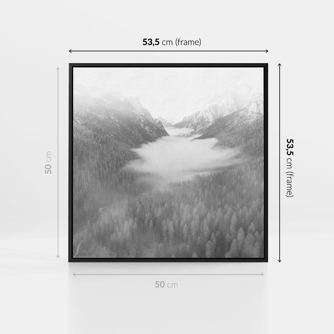 Obraz w ramie 50x50 - Szare Góry - zamglony krajobraz, las - rama czarna