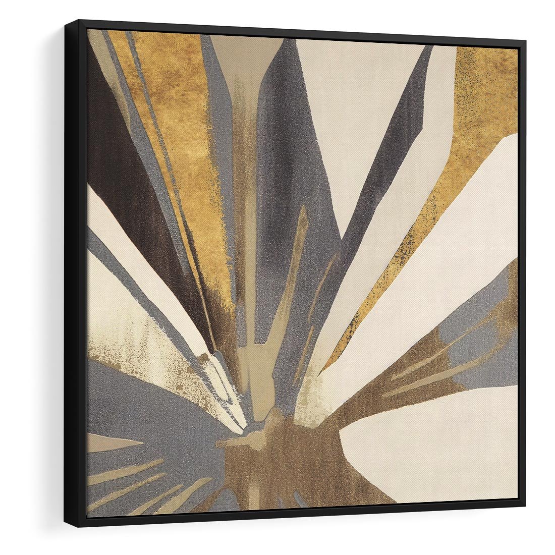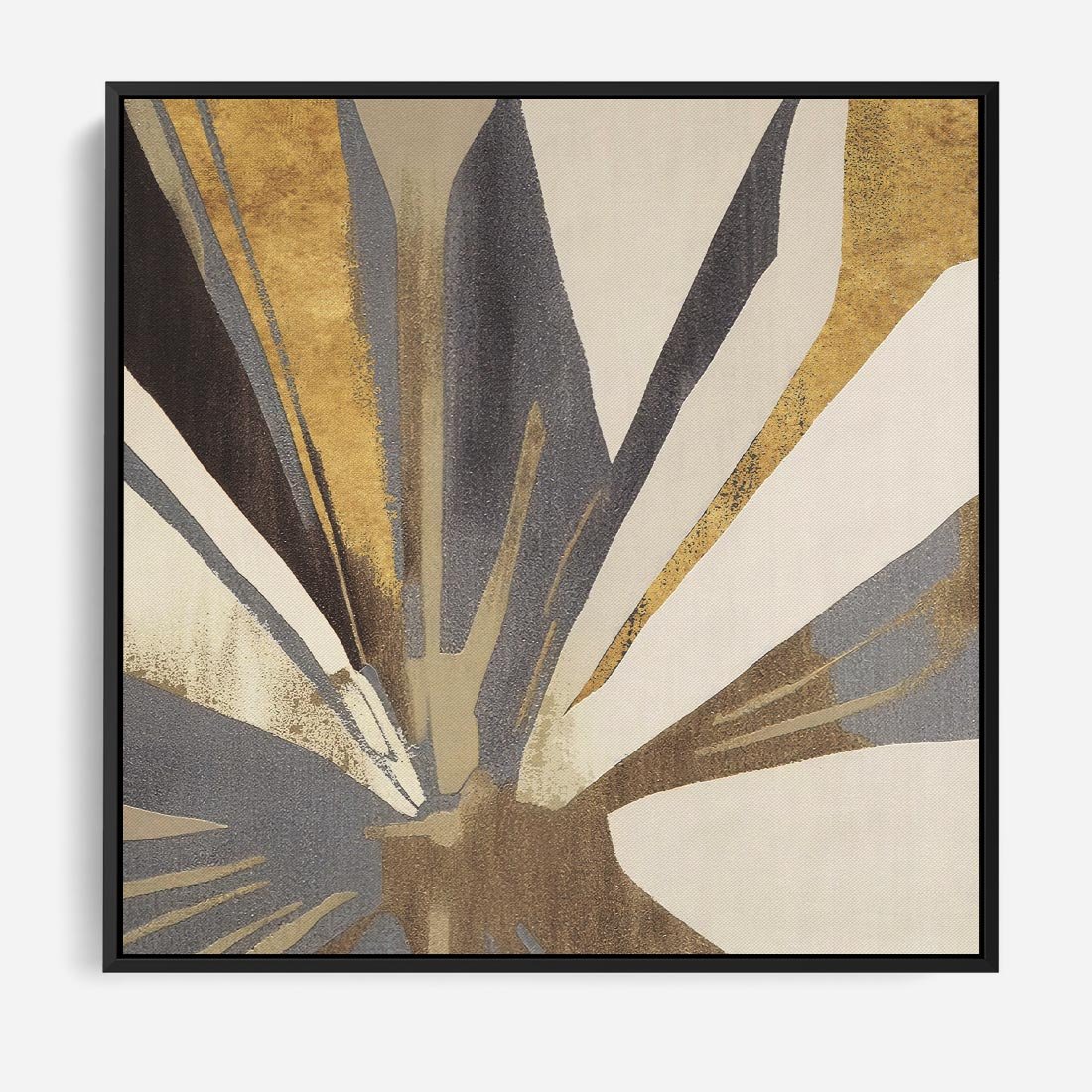 Obraz w ramie 50x50 - Szept roślinnych emocji - olejna abstrakcja, złoto i brąz - rama czarna