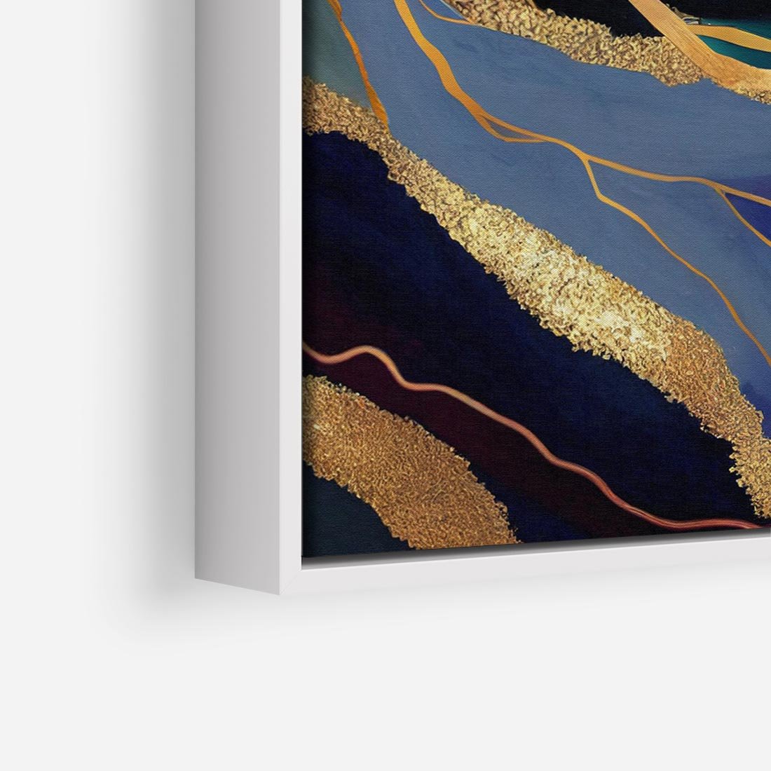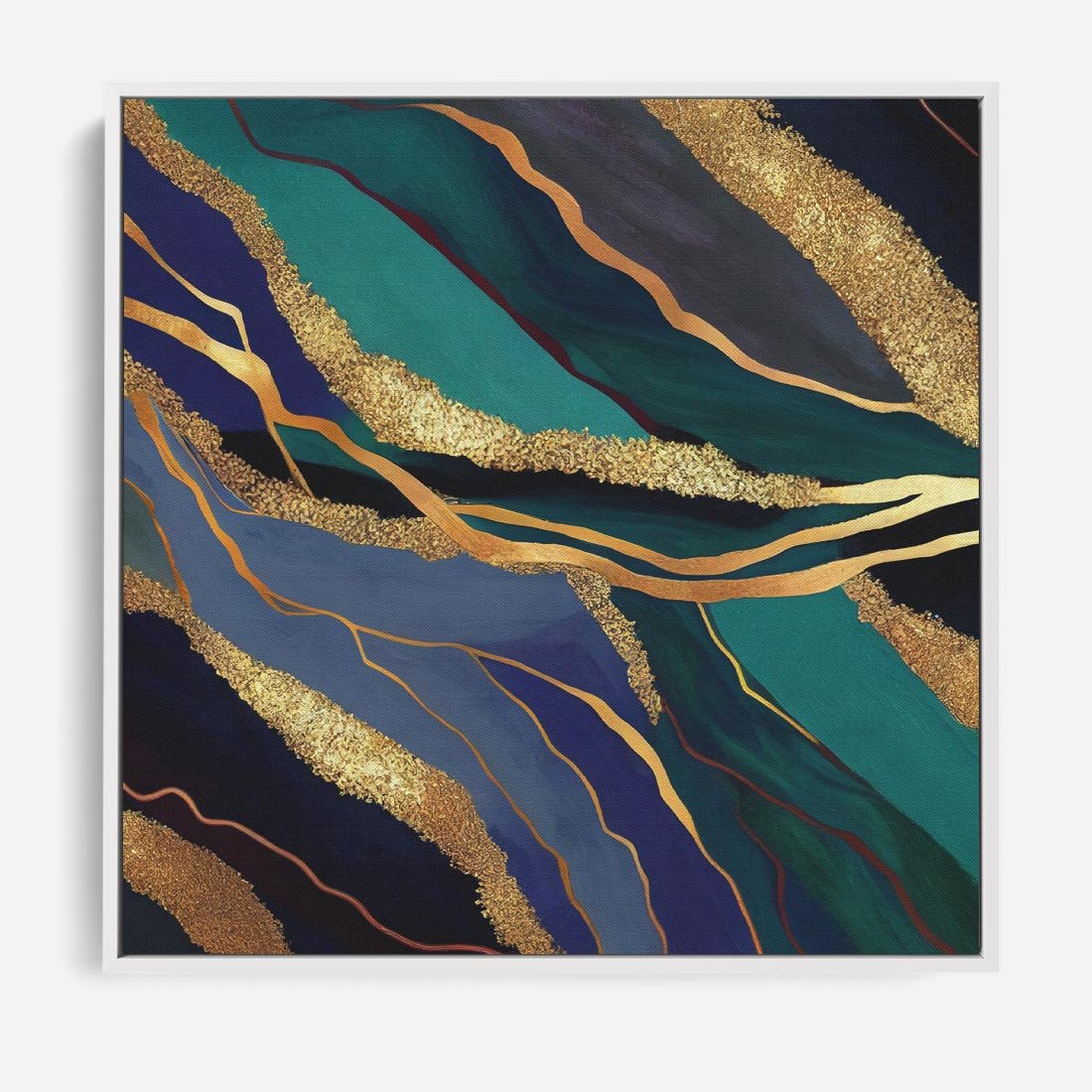 Zachwycaj się abstrakcyjną grafiką inspirowaną marmurem, wzbogaconą o intensywne kolory złota, zieleni i granatu. To wyjątkowe dzieło sztuki, stworzone dla osób ceniących elegancję i nowoczesność. Obraz emanuje luksusowym wdziękiem i będzie doskonałą dekoracją dla miłośników sztuki, pragnących unikalnego akcentu w swoich wnętrzach.