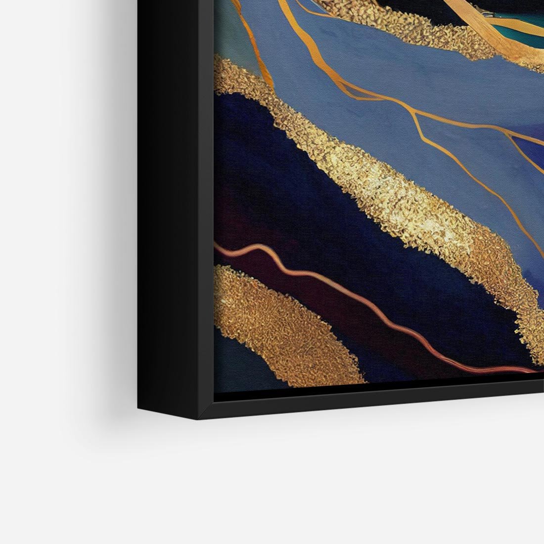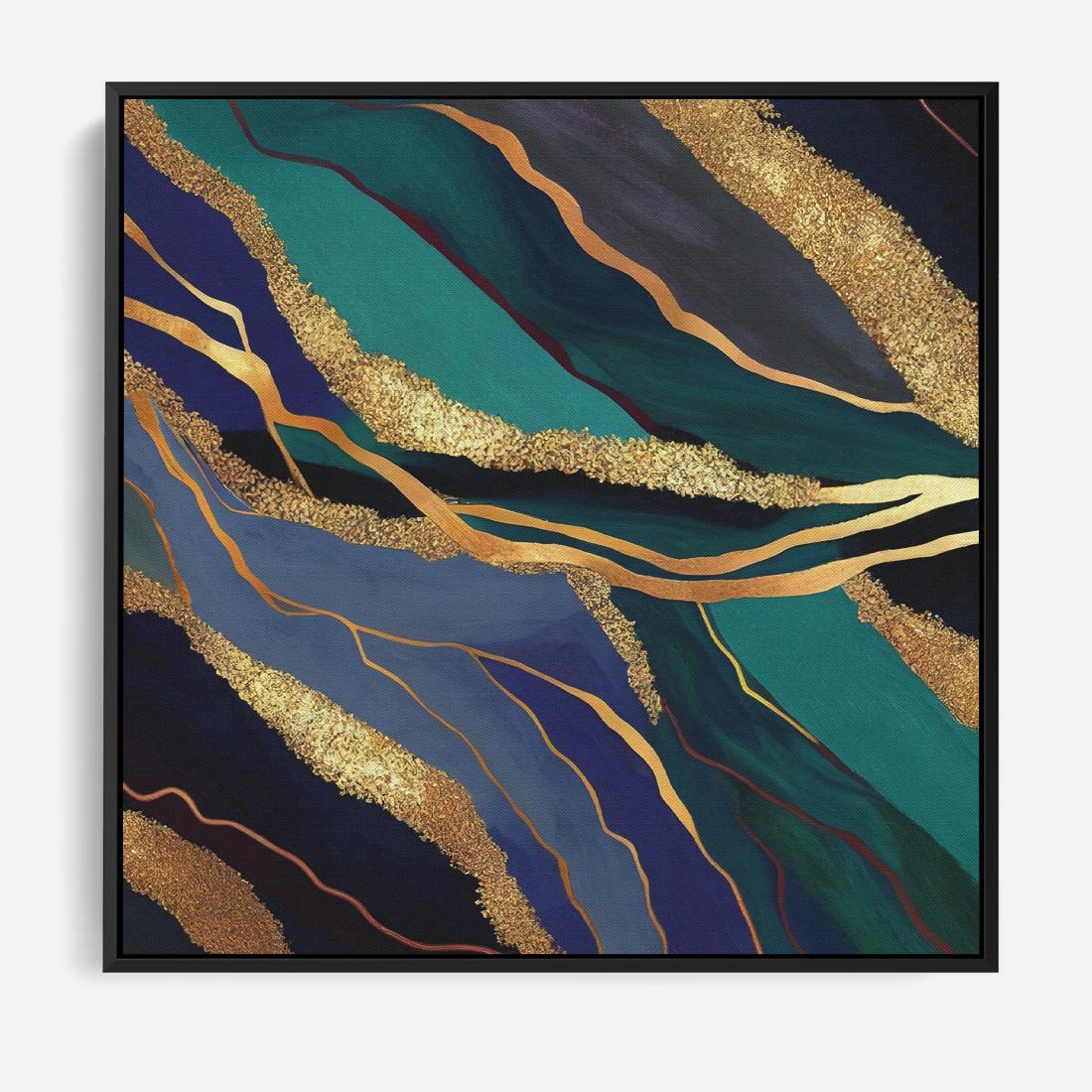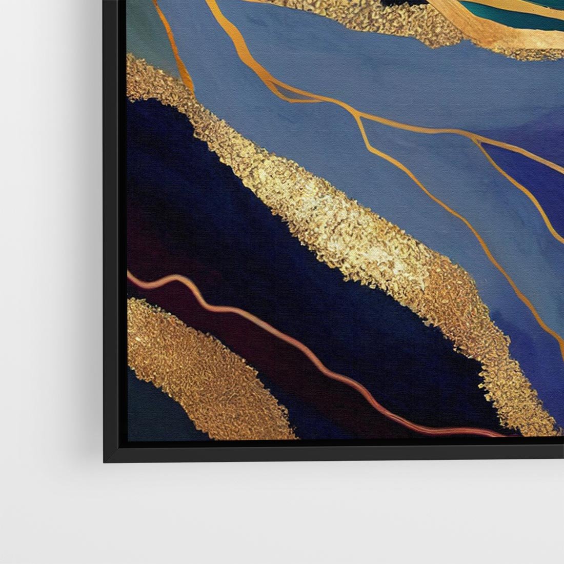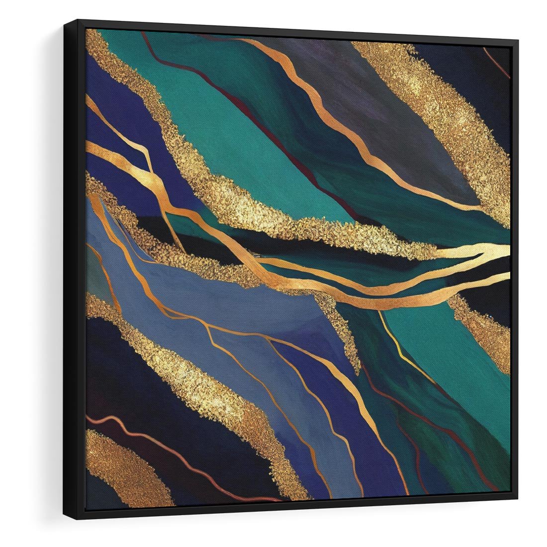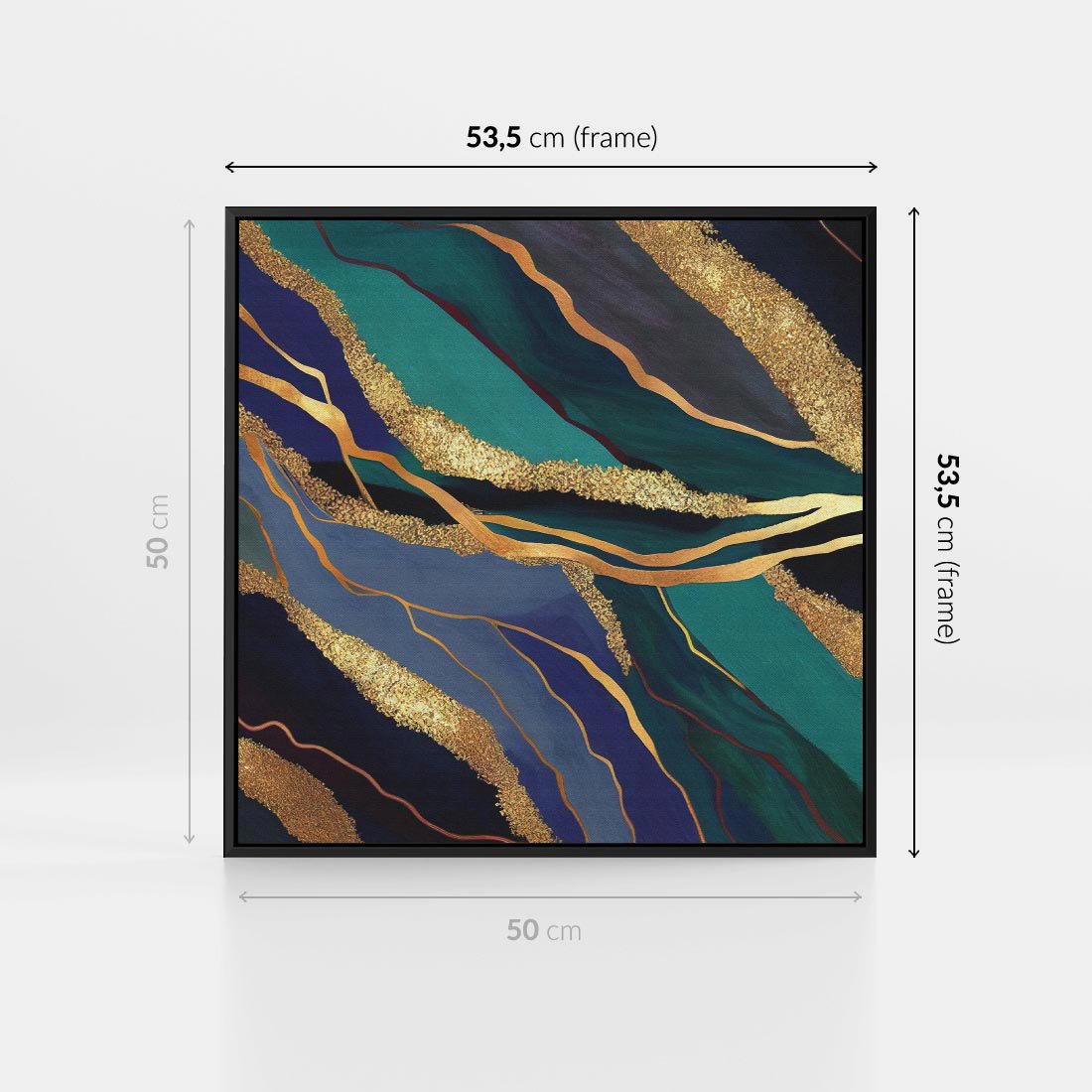 Zachwycaj się abstrakcyjną grafiką inspirowaną marmurem, wzbogaconą o intensywne kolory złota, zieleni i granatu. To wyjątkowe dzieło sztuki, stworzone dla osób ceniących elegancję i nowoczesność. Obraz emanuje luksusowym wdziękiem i będzie doskonałą dekoracją dla miłośników sztuki, pragnących unikalnego akcentu w swoich wnętrzach.