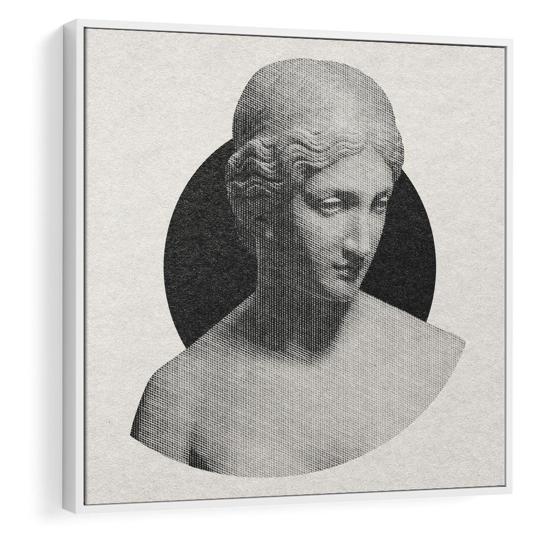 Wybierz ten graficzny kolaż, aby cieszyć się antyczną rzeźbą kobiety w nowoczesnym wydaniu. Czarno-biały obraz dodaje elegancji, a sztuka na płótnie wciąż emanuje magią dawnych czasów.