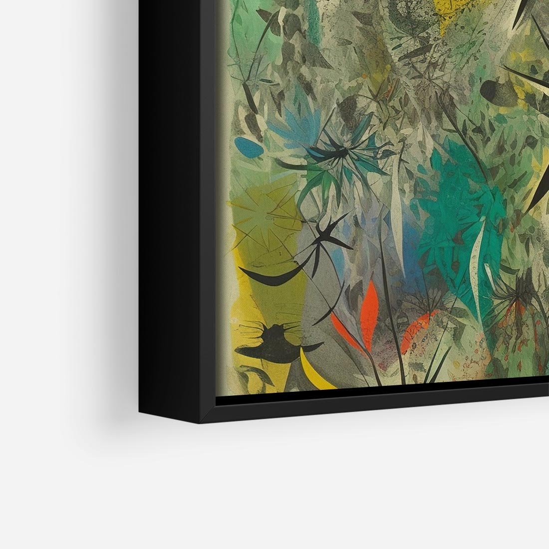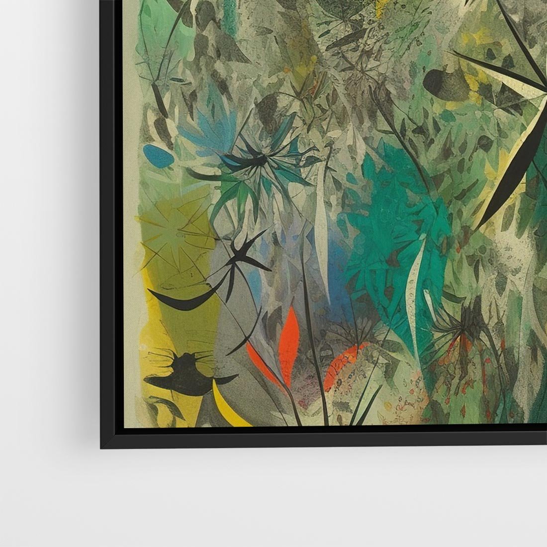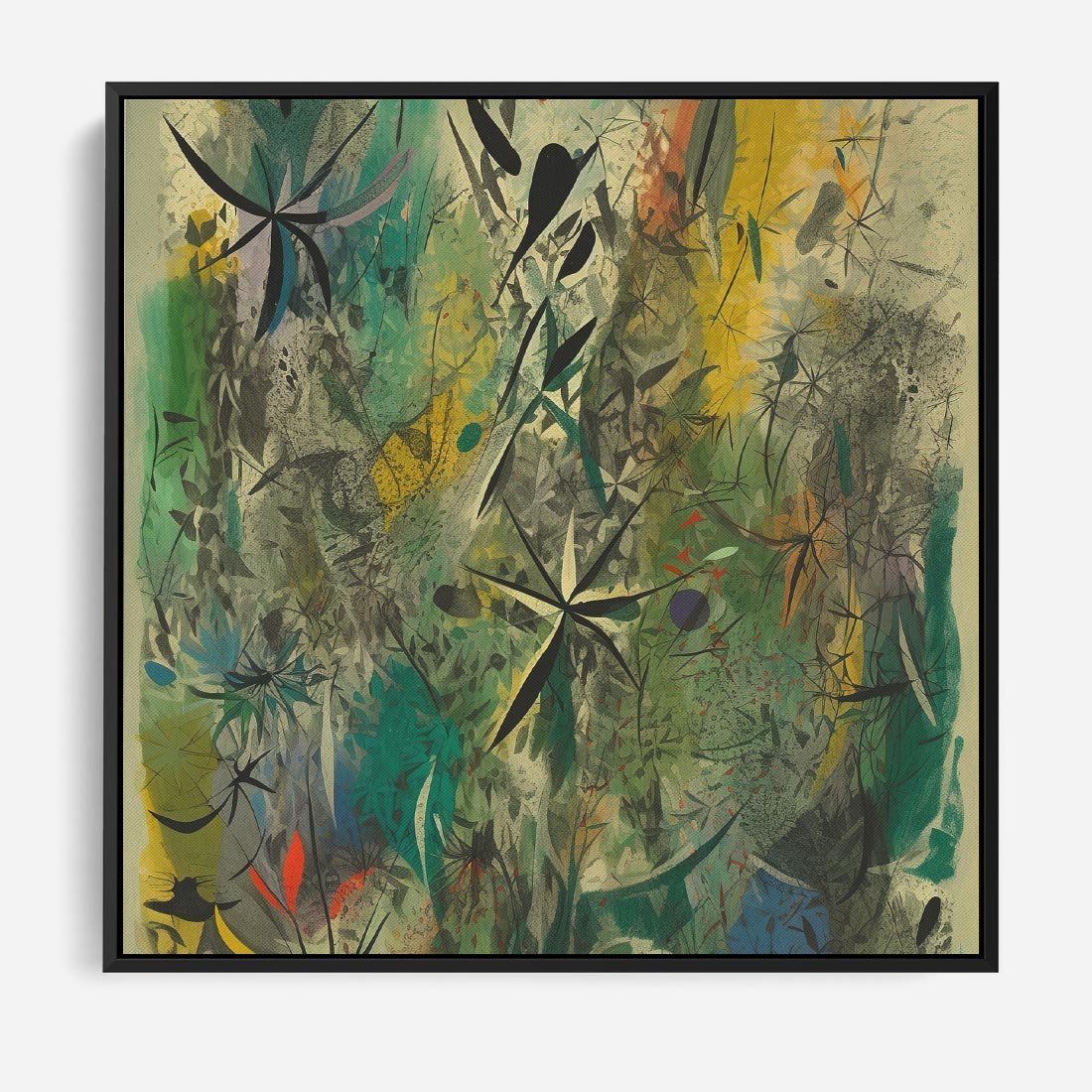 Ten abstrakcyjny obraz to prawdziwa eksplozja kolorów i małych, zawiłych elementów. Ich kształty tworzą harmonijną całość, wzbogaconą o roślinne motywy. Ciekawa i intrygująca kompozycja przyciąga uwagę i inspiruje do refleksji.