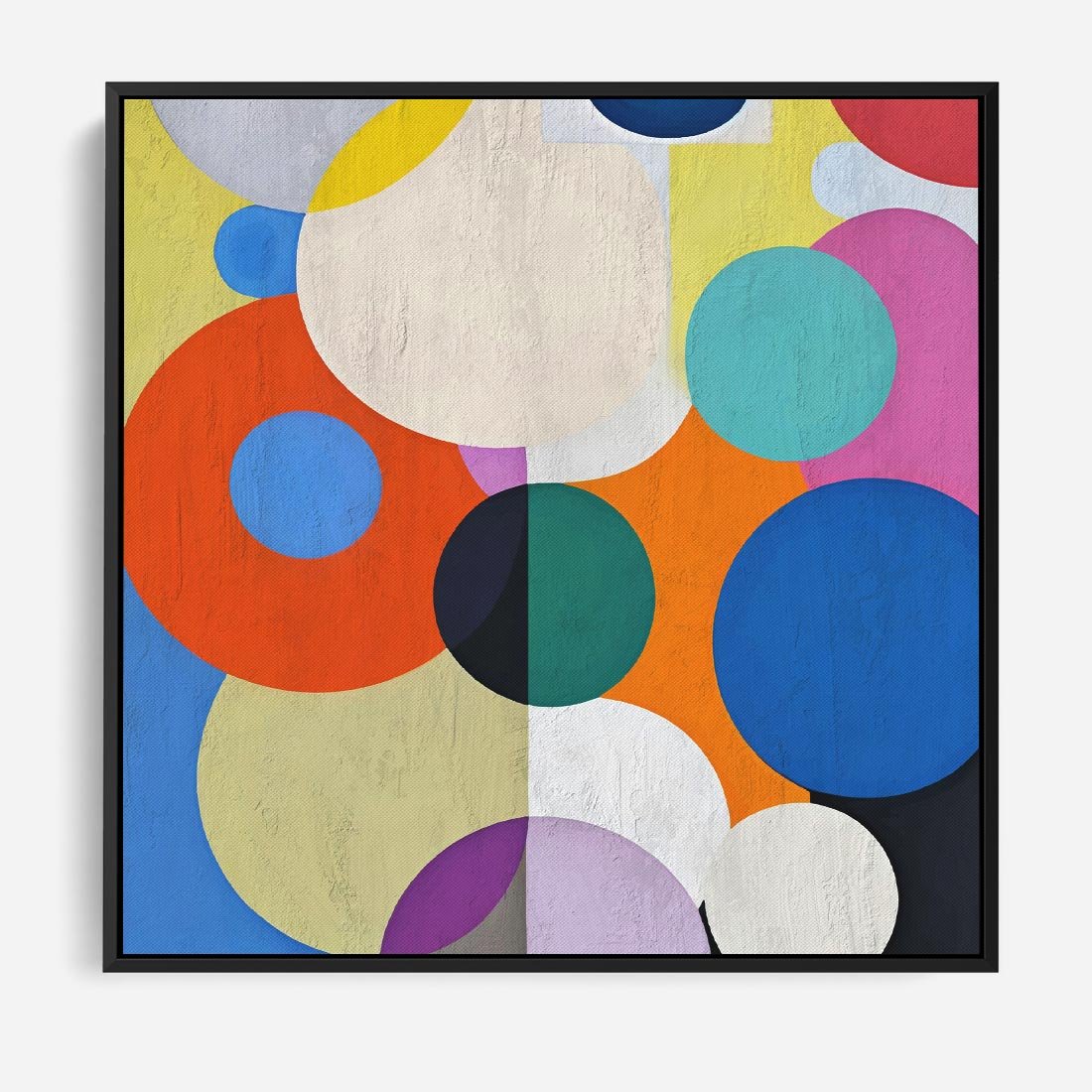 Ten olejny obraz to prawdziwa uczta dla oczu, dzięki abstrakcyjnym geometrycznym kształtom w postaci dynamicznych kół. Intensywne, żywe kolory nadają mu energii i głębi, tworząc unikalną kompozycję, która wciąga i zachwyca. To prawdziwa sztuka, która wzbogaci każde wnętrze.