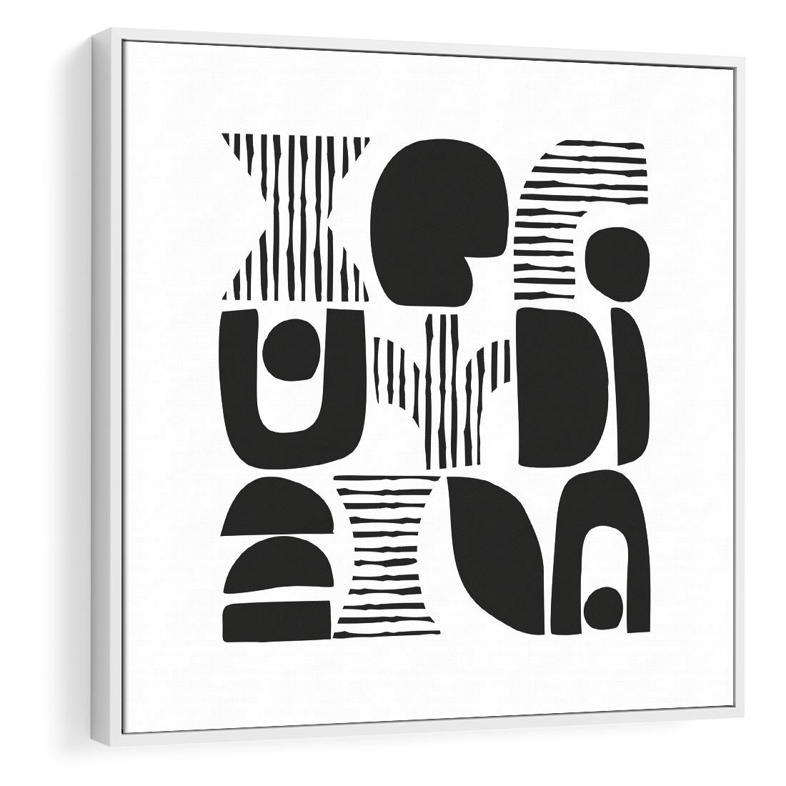 Obraz w ramie 50x50 - Taniec Dziwacznych Kresek - minimalistyczny plakat, czarno biały - rama biała