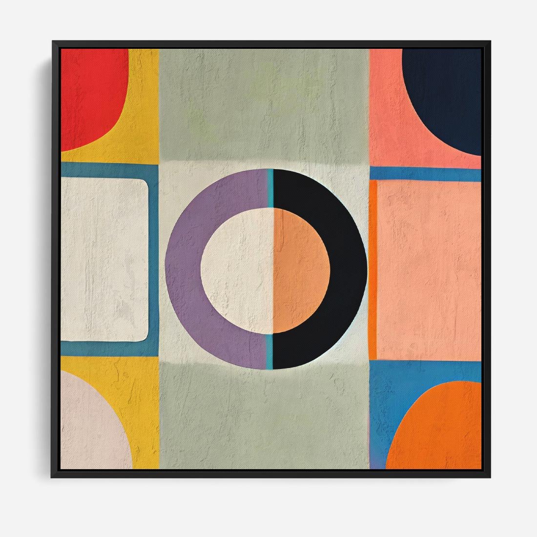Obraz w ramie 50x50 - Taniec Kształtów Emocji - abstrakcyjne geometryczne kształty, olejny obraz - rama czarna