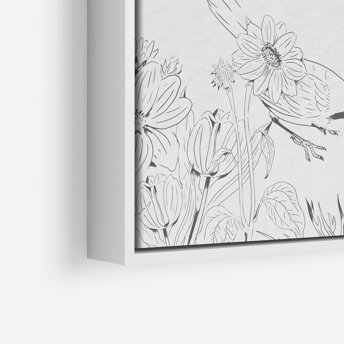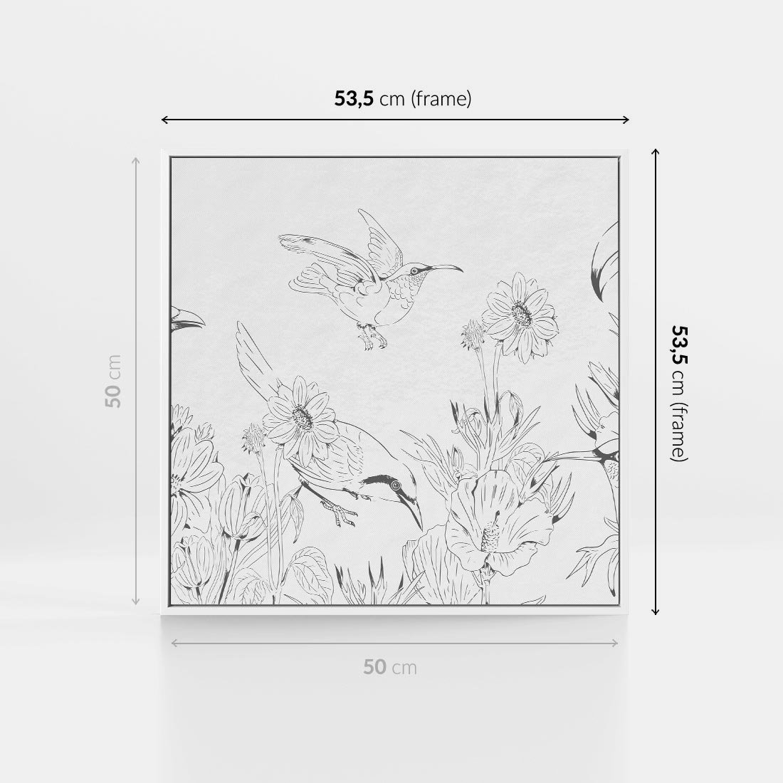 Obraz w ramie 50x50 - Tropiki w Monochromie - czarno biały szkic, tropikalne ptaki - rama biała