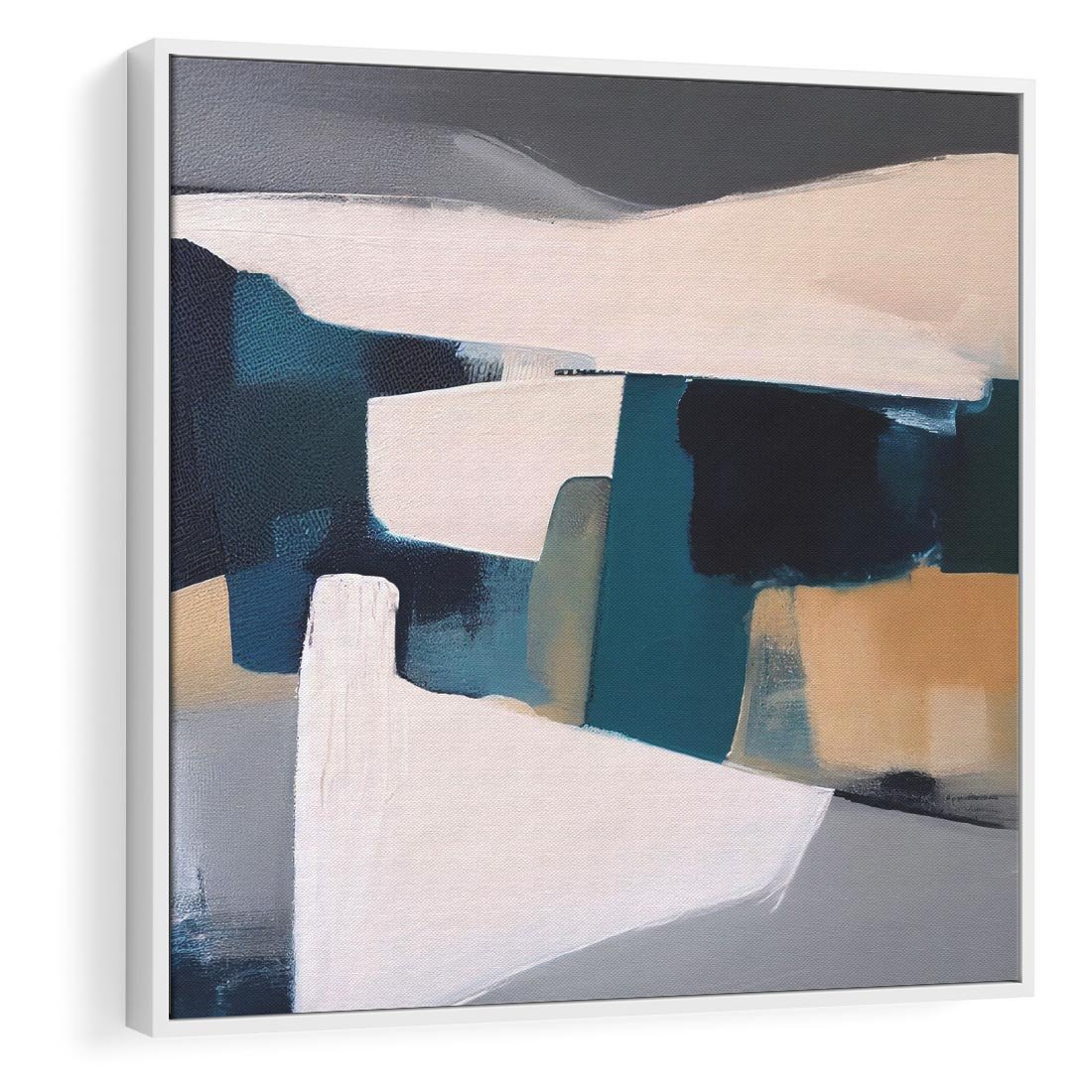 Obraz w ramie 50x50 - Turkusowe Maźnięcia - obraz, abstrakcja - rama biała