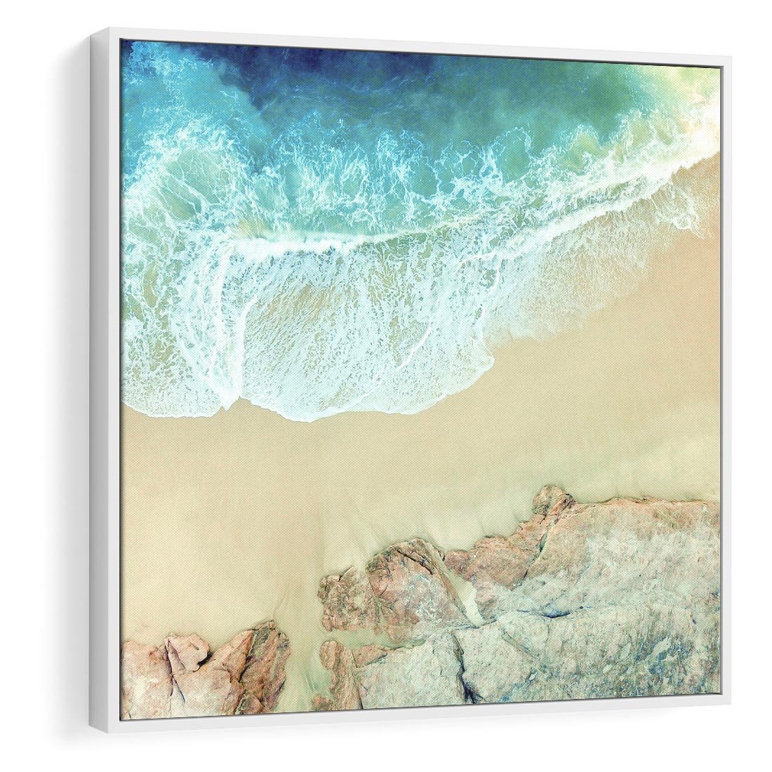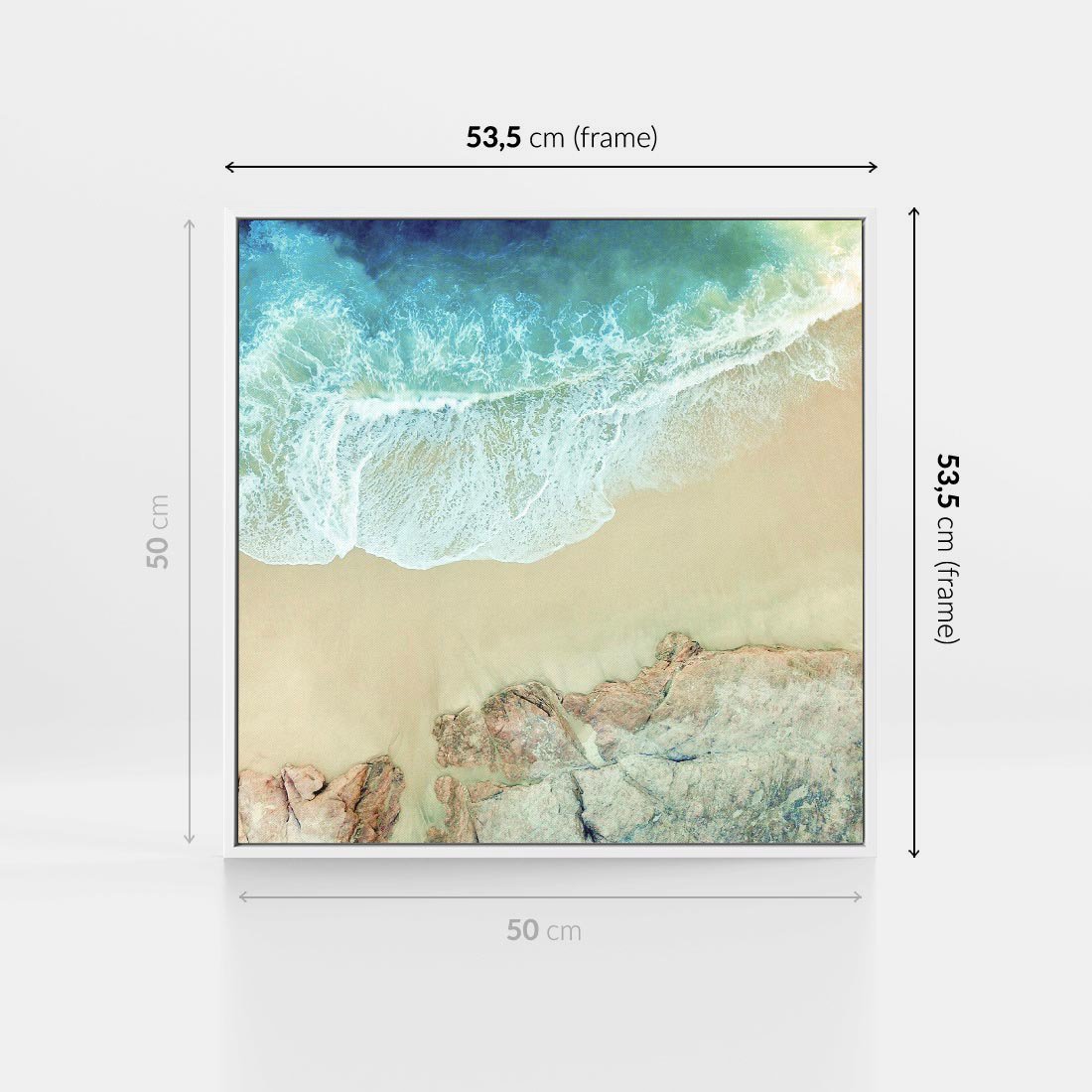 Odkryj urok nadmorskiej przygody dzięki temu fascynującemu obrazowi. Widok z lotu ptaka ukazuje turkusową wodę i błyszczącą plażę. To dzieło sztuki stworzone dla miłośników morskich krajobrazów i spokoju. Doskonały akcent dla tych, którzy pragną wprowadzić do swojego wnętrza powiew świeżego powietrza i uroku morskich pejzaży.