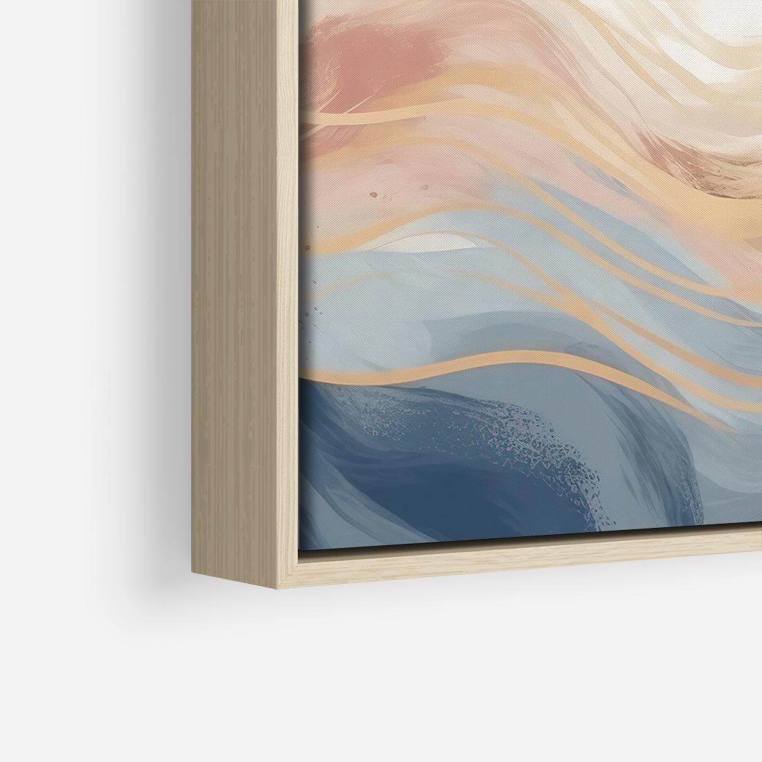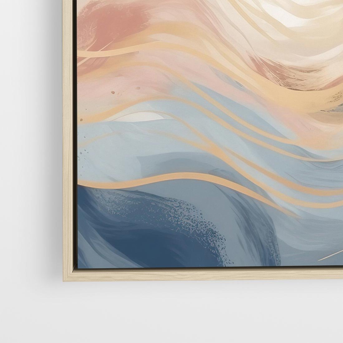 Odkryj elegancję w subtelnych abstrakcyjnych falach na płótnie. Gładkie linie tworzą klasyczne kształty, a delikatne pastelowe kolory dodają przyjemnej atmosfery, idealnej do ozdobienia Twojego domu.