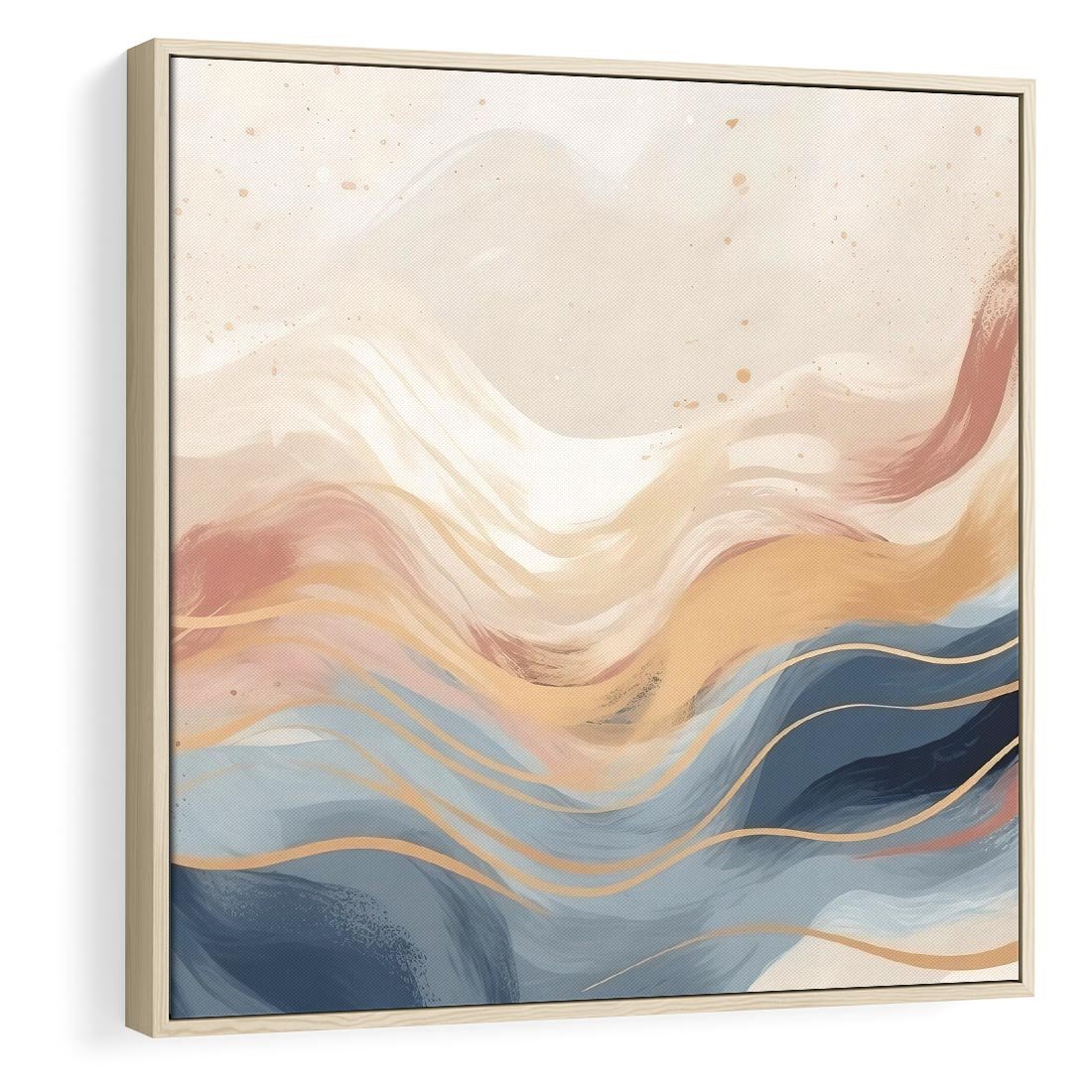 Obraz w ramie 50x50 - Ukojenie Współczesności - abstrakcyjne fale, gładkie linie - rama drewno