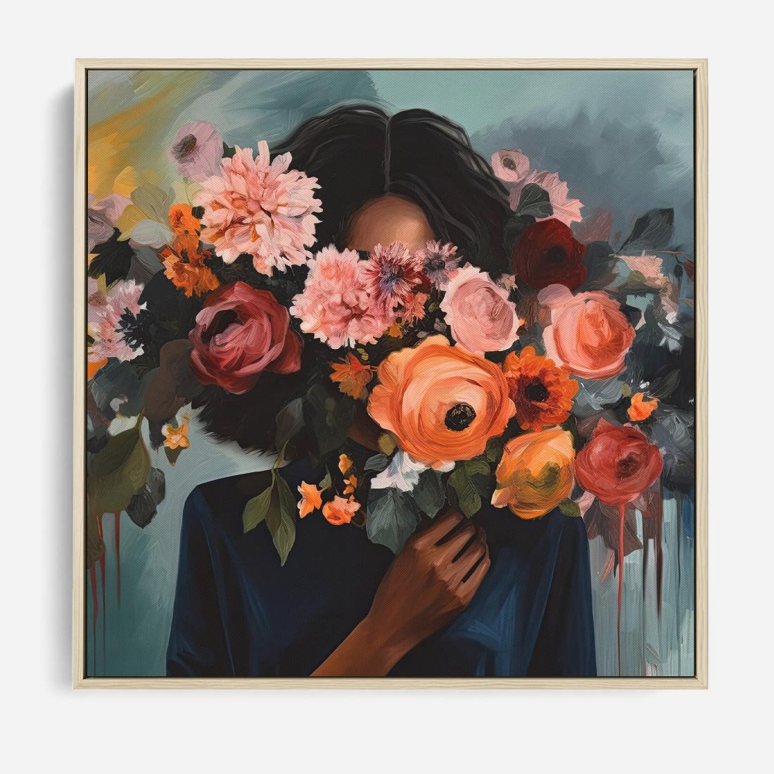 To wyjątkowy obraz wykonany techniką akwareli. Przedstawia on piękną kobietę trzymającą bujny bukiet kwiatów, które subtelnie zasłaniają jej twarz, pozostawiając miejsce dla wyobraźni. Ukryte Emocje emanuje tajemniczością i subtelnością, zachęcając widza do odkrycia głębszych uczuć i myśli. To idealna dekoracja dla osób, które doceniają delikatność i niepowtarzalny urok akwareli.