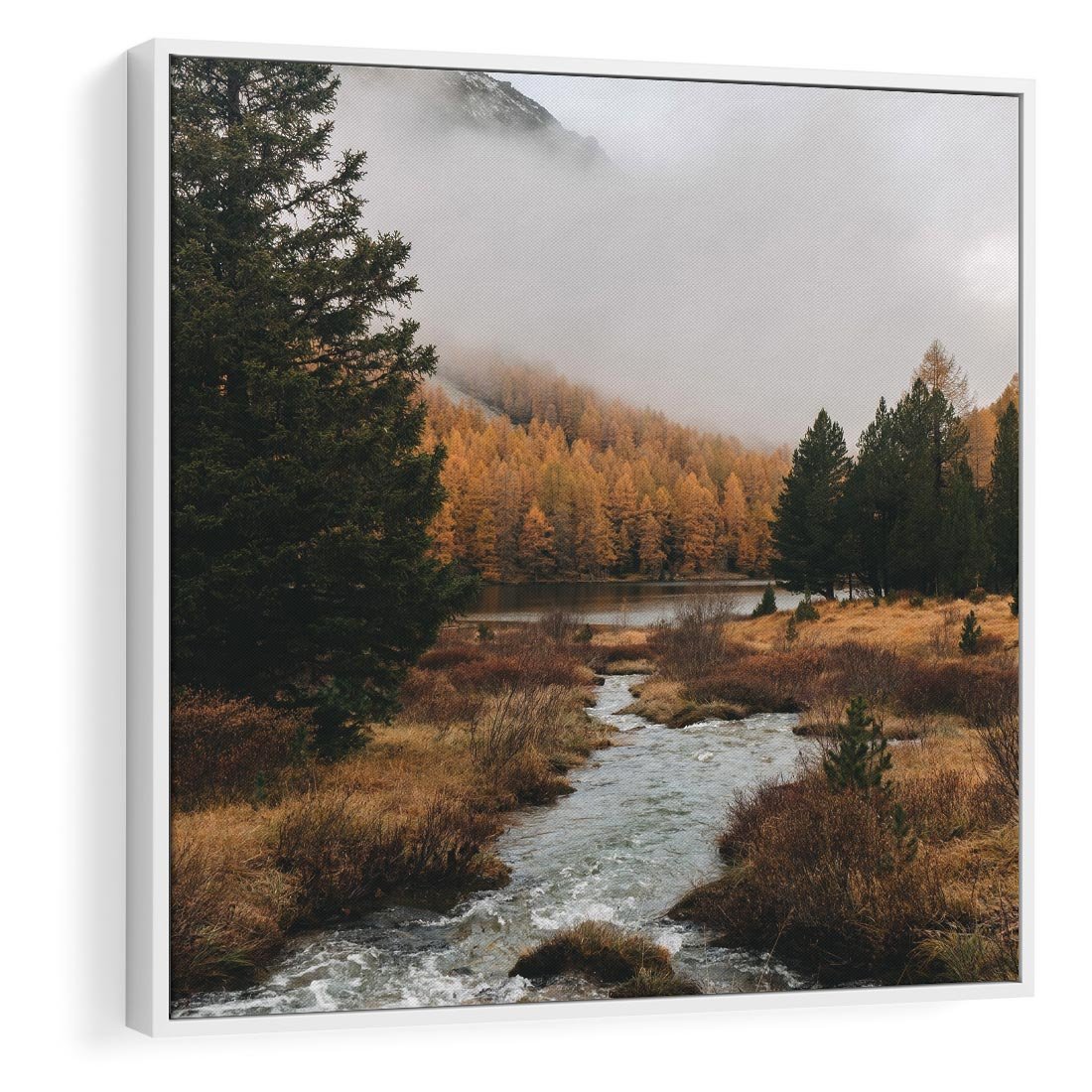 Obraz w ramie 50x50 - W Górskiej Dolinie - artystyczna fotografia, las - rama biała
