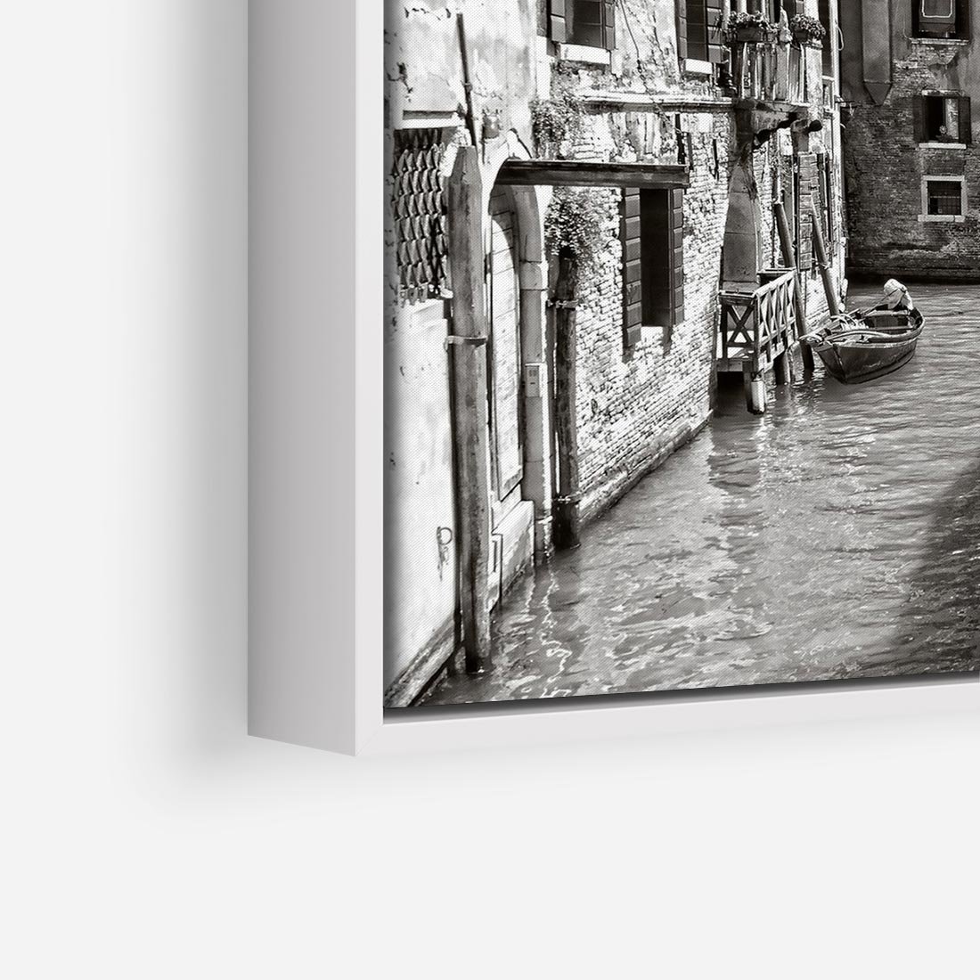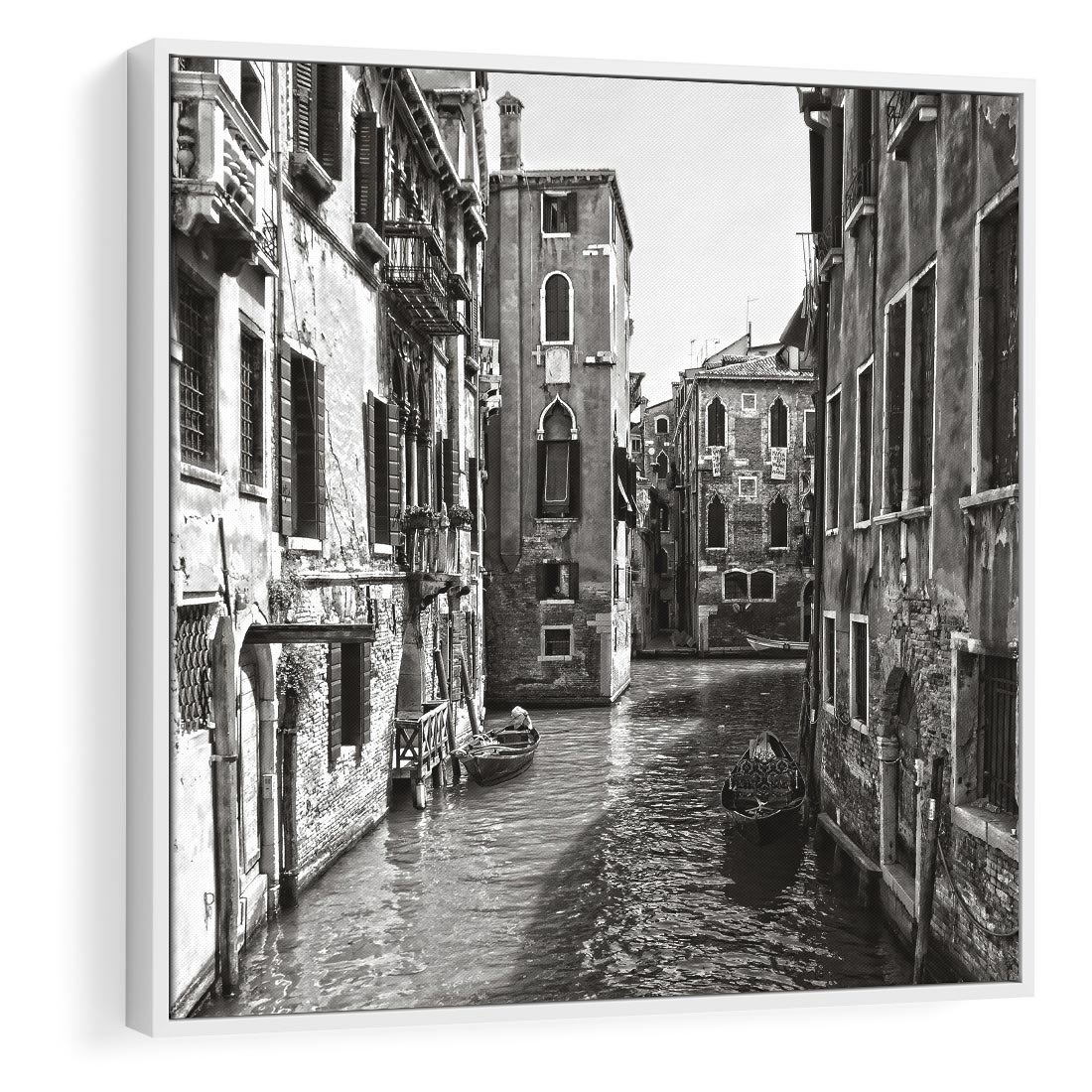 Obraz w ramie 50x50 - Weneckie Kanały - czarno białe zdjęcie, wenecja - rama biała