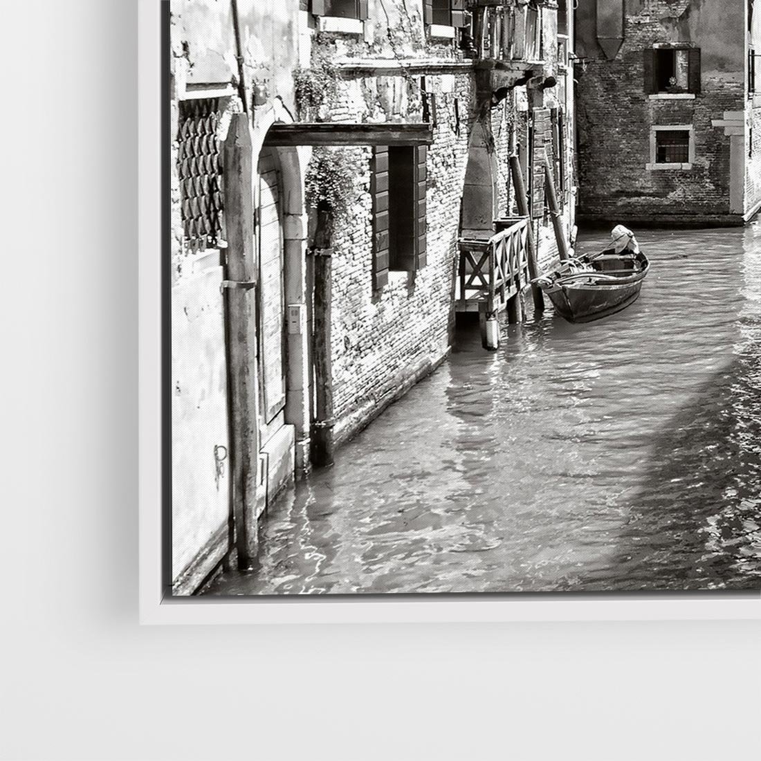 To czarno-białe zdjęcie ukazuje romantyczną atmosferę Wenecji. Widok kanałów i gondol, uchwycony w monochromatycznej tonacji, nadaje tej fotografii wyjątkowego uroku. To idealna dekoracja dla miłośników włoskich krajobrazów i kultury Wenecji, którzy chcieliby dodać odrobinę włoskiego uroku do swojego wnętrza.