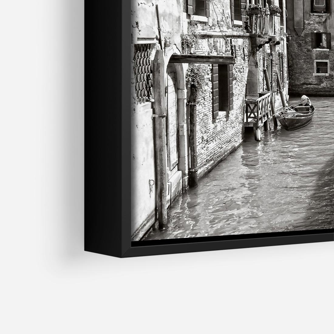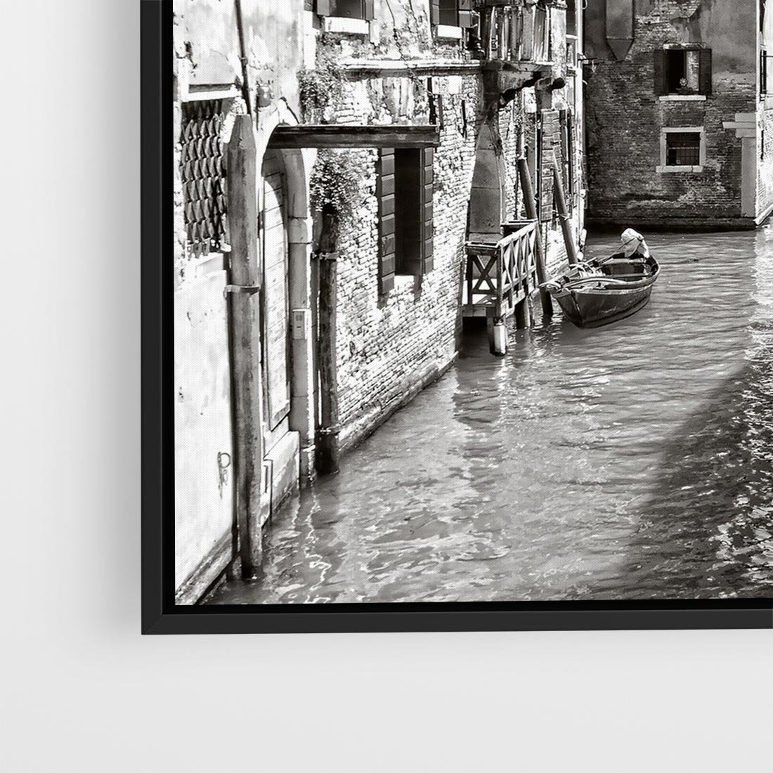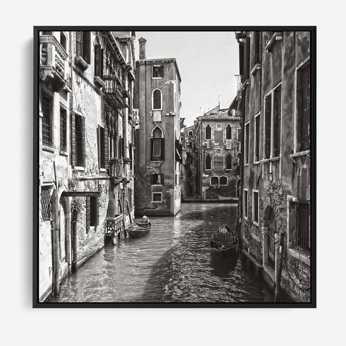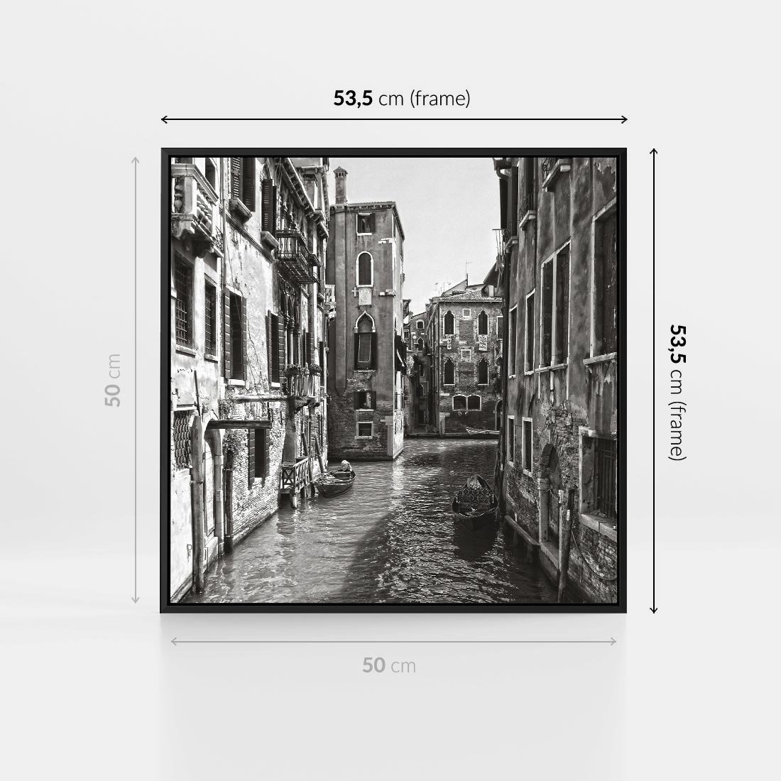 Obraz w ramie 50x50 - Weneckie Kanały - czarno białe zdjęcie, wenecja - rama czarna