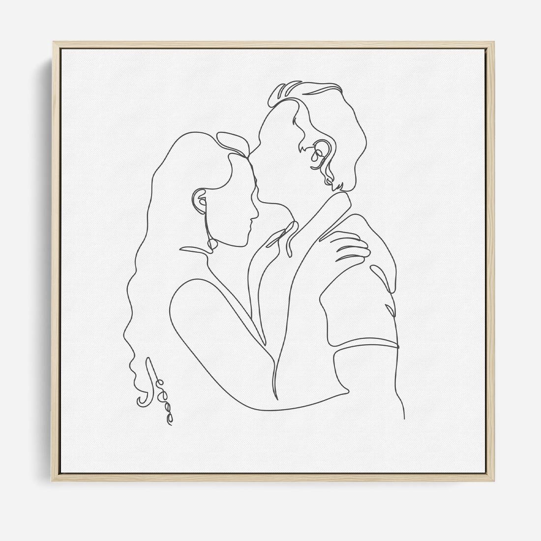 Naszkicowana jedną linią para zakochanych - kobieta i mężczyzna - symbolizuje ich połączenie i bliskość w minimalistyczny sposób.