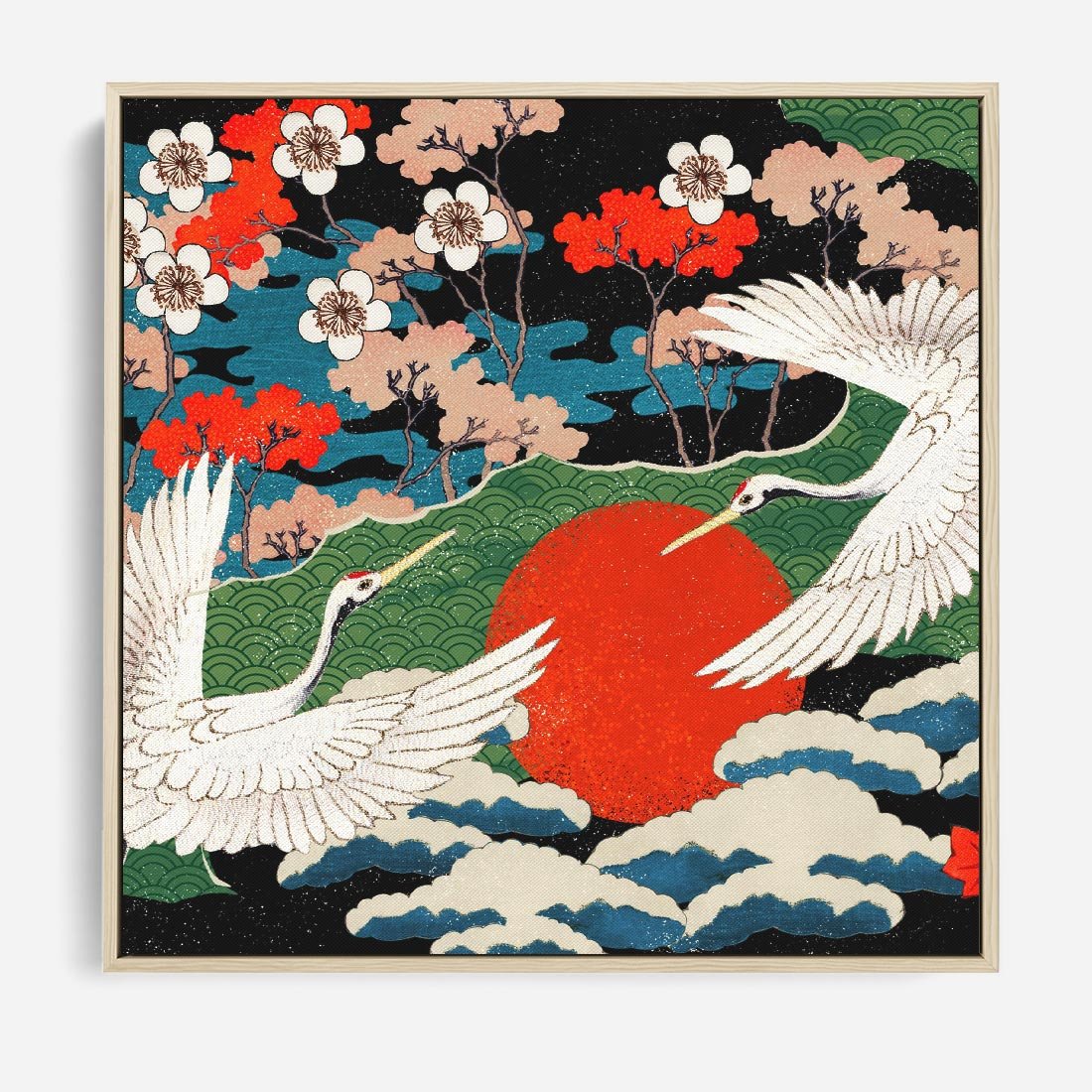 Podziwiaj wyjątkowy obraz inspirowany sztuką japońską, gdzie wyraziste kolory ożywiają motywy żurawi i kwitnącej wiśni. To dzieło sztuki stworzone dla miłośników delikatnej estetyki i symboli natury. Doskonały akcent dla tych, którzy pragną wprowadzić harmonię, piękno przyrody oraz ducha Japonii do swoich wnętrz.