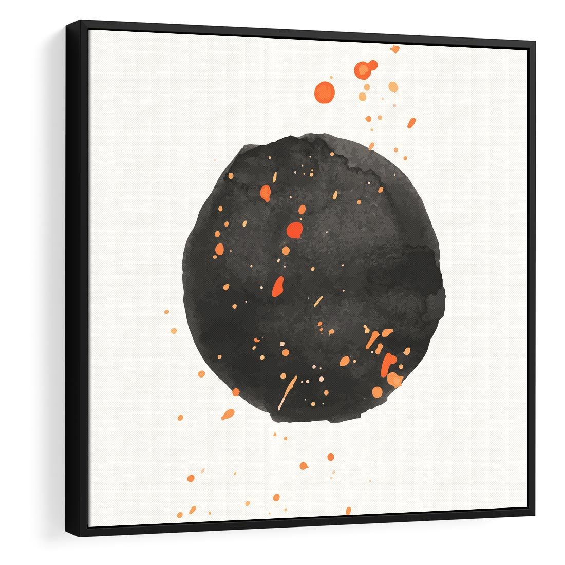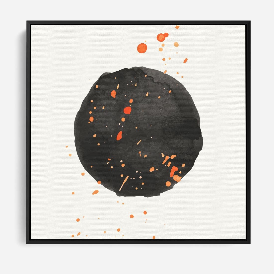 Obraz w ramie 50x50 - Wibracje Kolorów - abstrakcyjna czarna plama, rozsiane pomarańczowe kropki - rama czarna