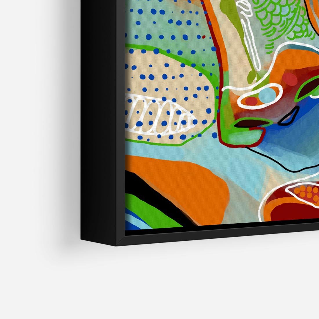 Abstrakcyjny portret kobiety to ekspresyjne dzieło sztuki, ukazujące jej twarz z zamkniętymi oczami. Intensywne, żywe kolory dodają głębi i emocji temu obrazowi, tworząc unikalną wizję piękna i tajemnicy.