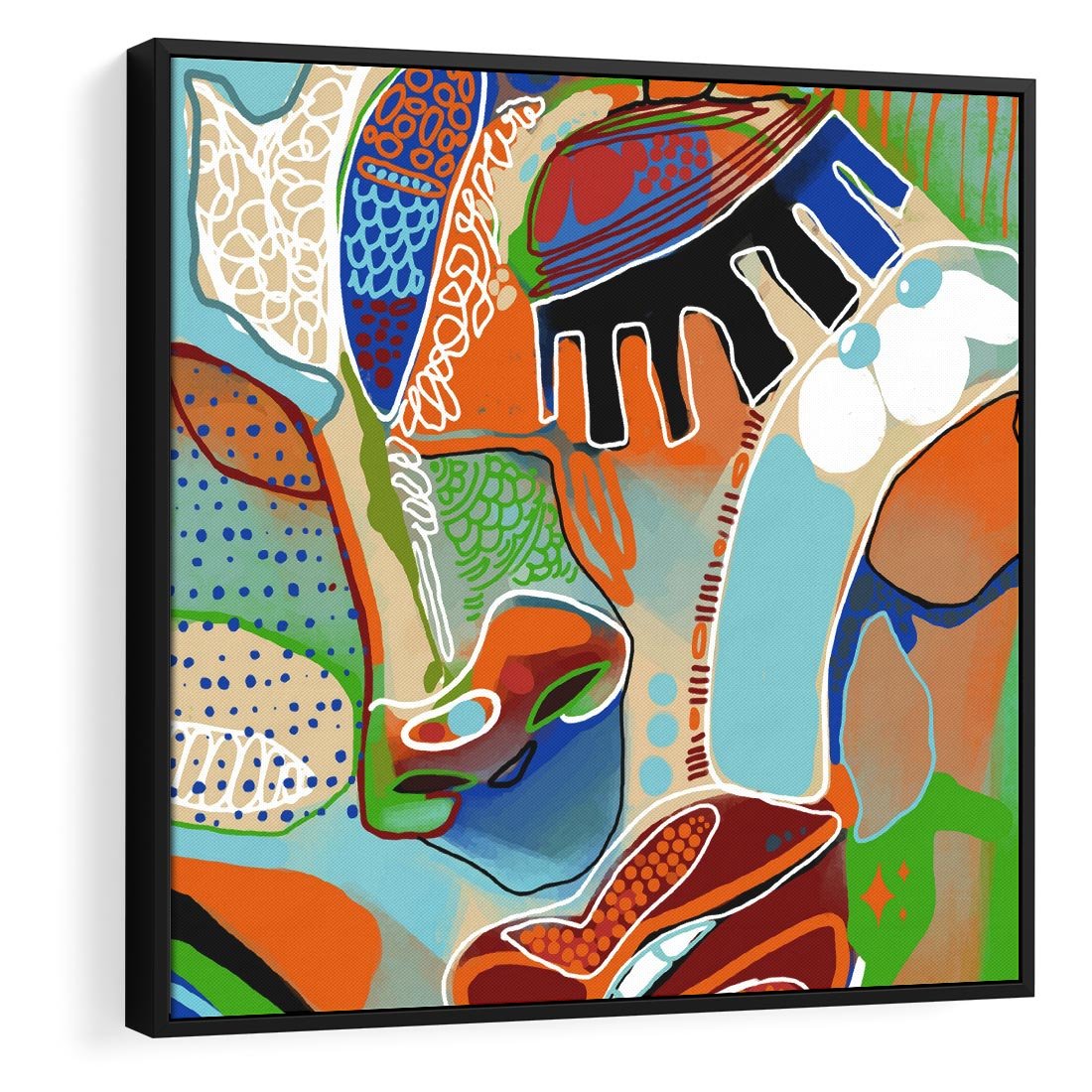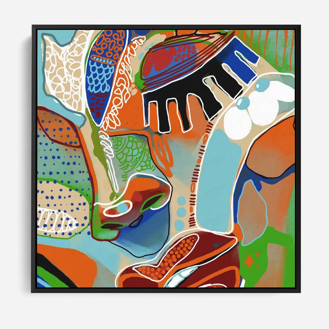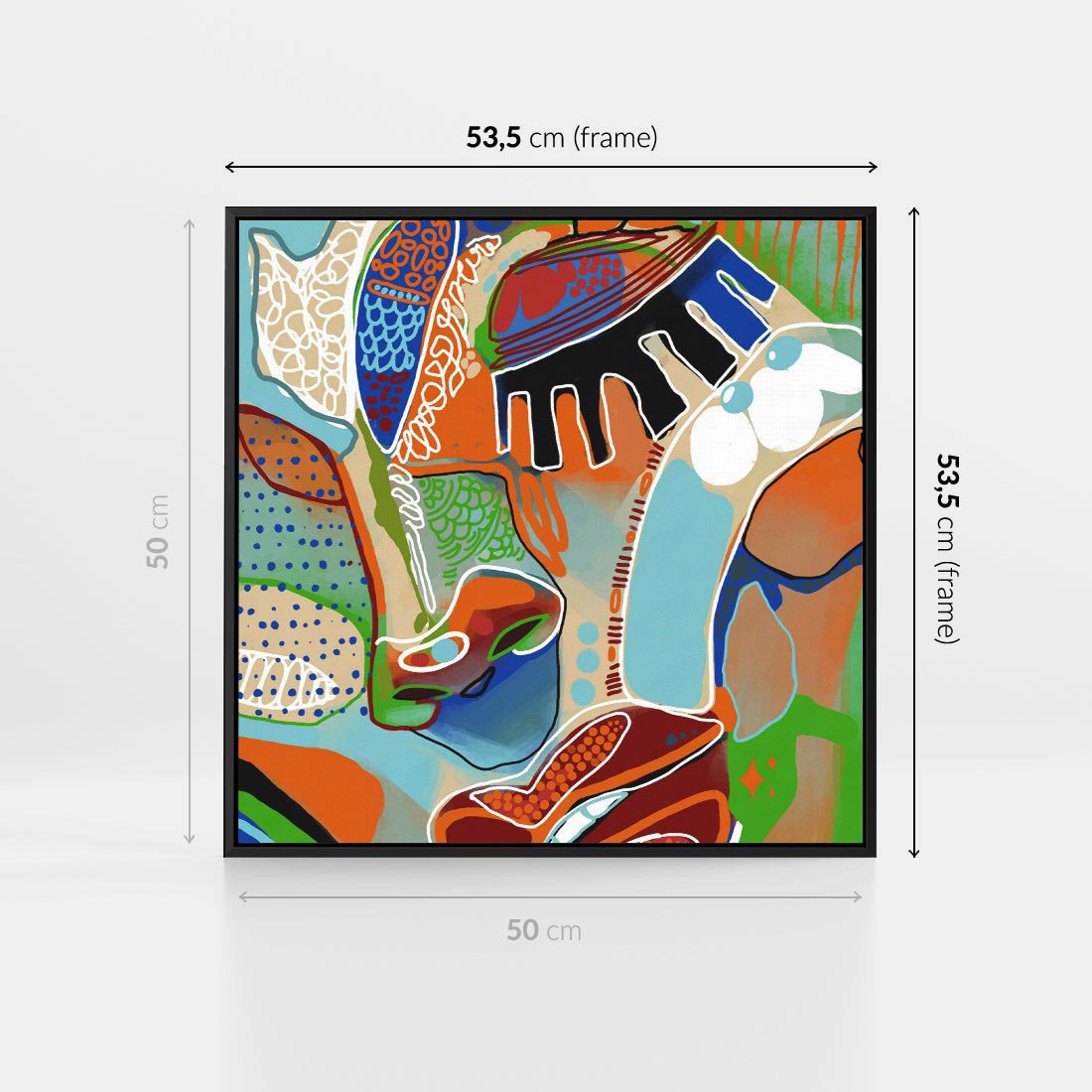 Obraz w ramie 50x50 - Wibracje Kształtów - abstrakcyjny portret kobiety, twarz - rama czarna