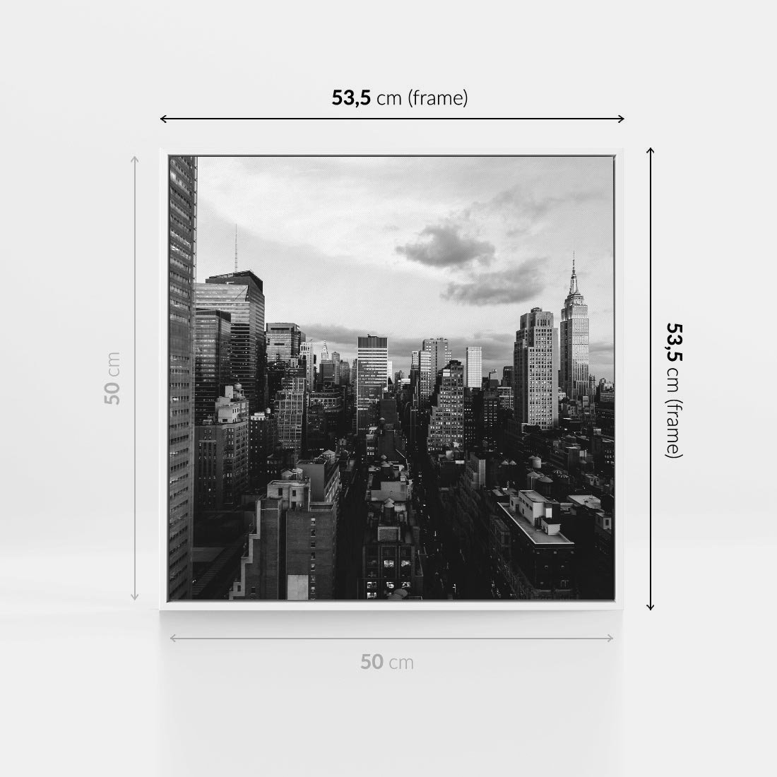 Obraz w ramie 50x50 - Wibracje Miejskiego Życia - miasto, wieżowce - rama biała