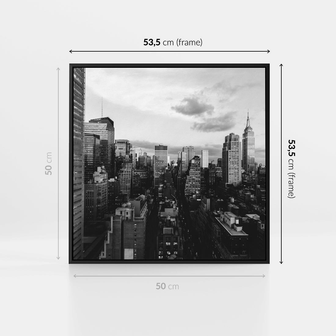 Obraz w ramie 50x50 - Wibracje Miejskiego Życia - miasto, wieżowce - rama czarna