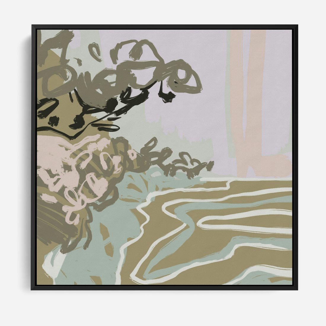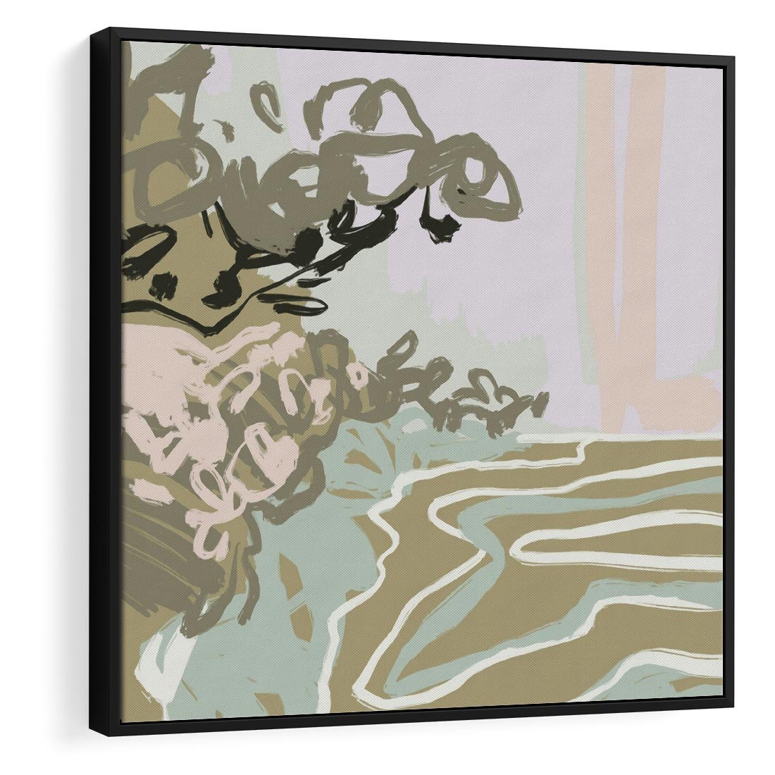 Obraz w ramie 50x50 - Wizja Przestrzeni - pastelowy krajobraz, nowoczesny plakat - rama czarna