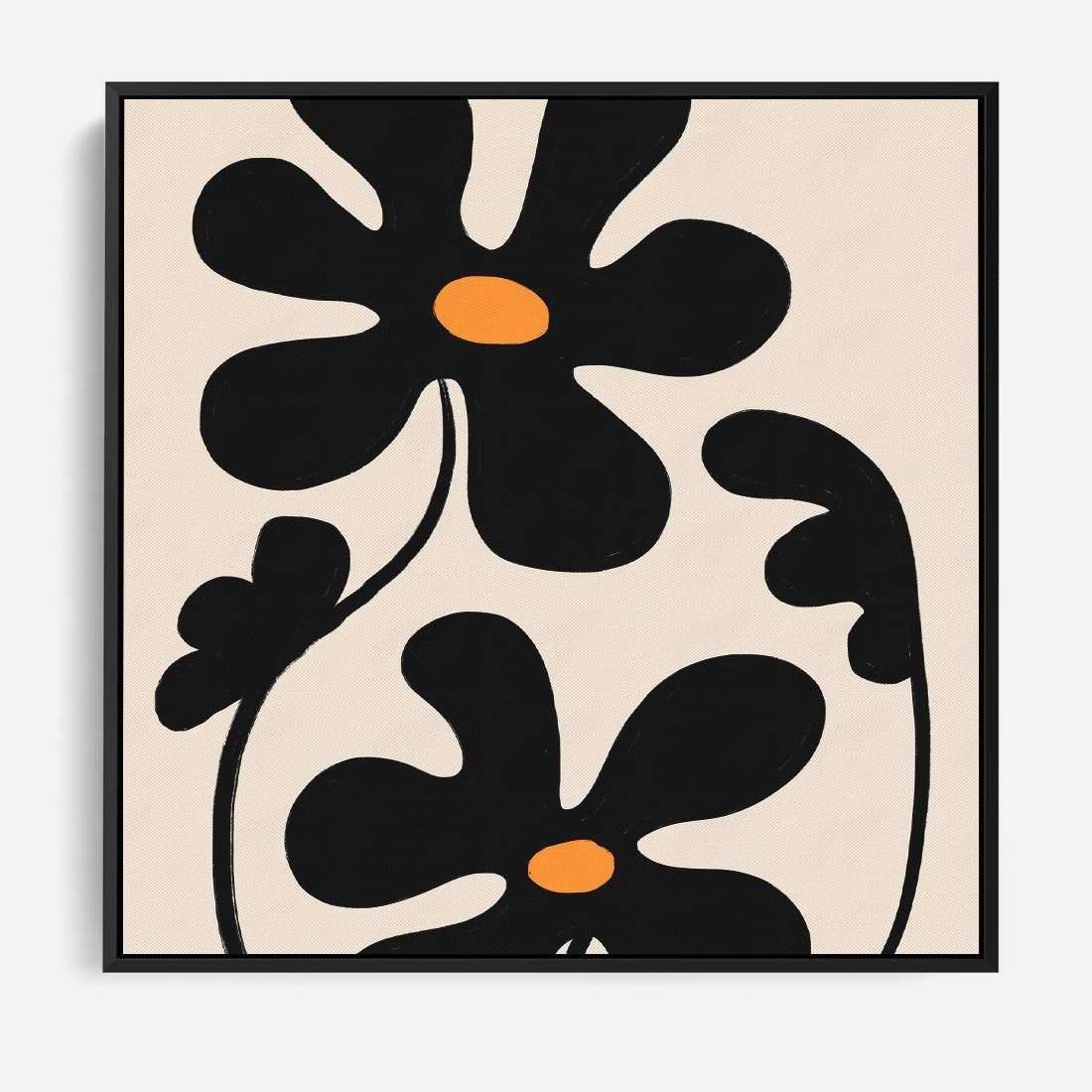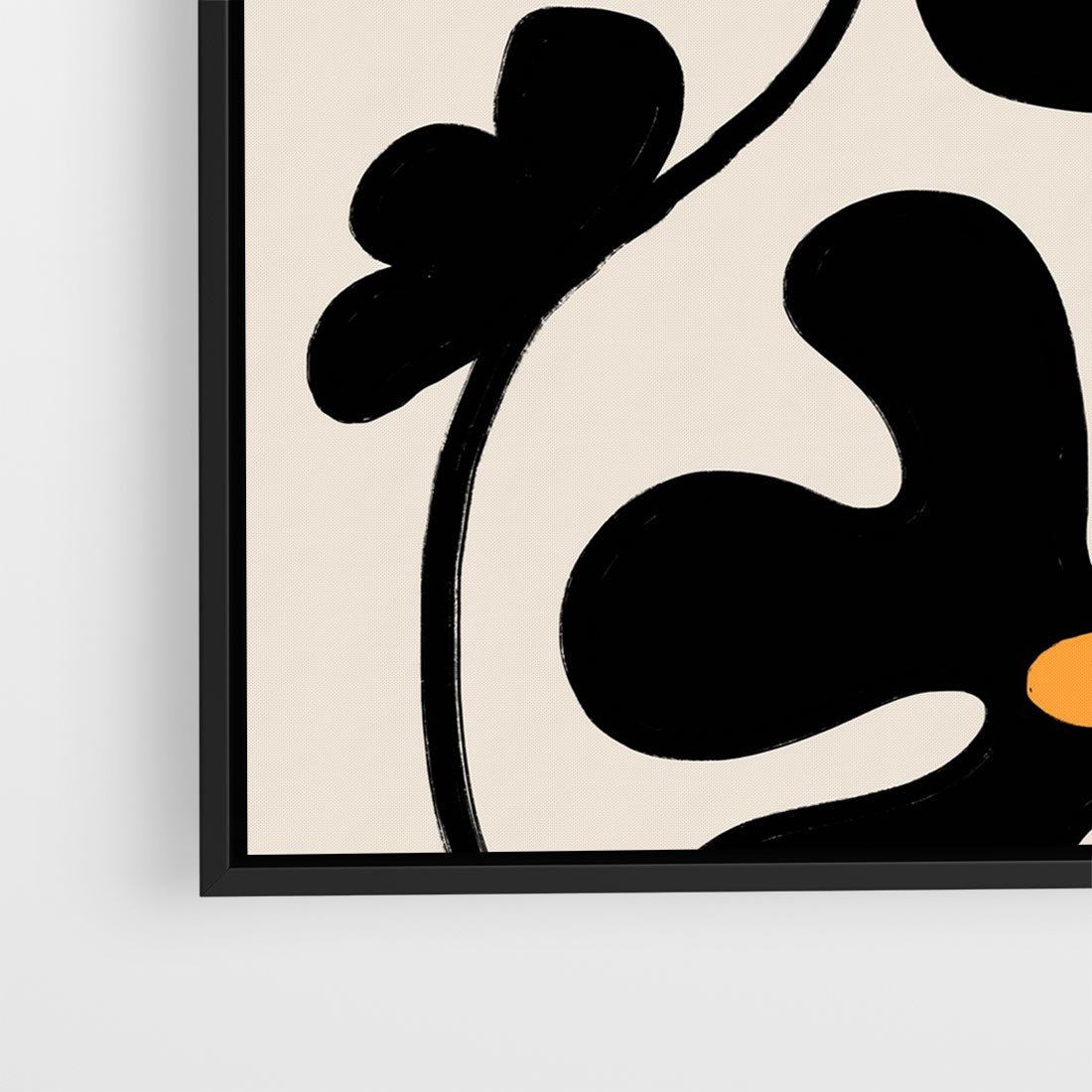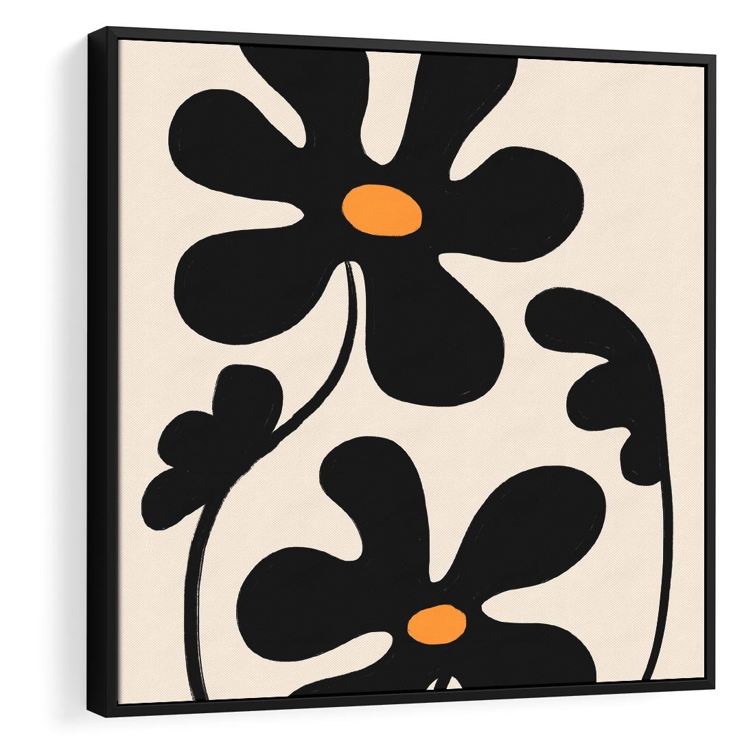 Obraz w ramie 50x50 - Wyjątkowość Boho - minimalistyczny abstrakcyjny obraz, prymitywne kwiaty - rama czarna