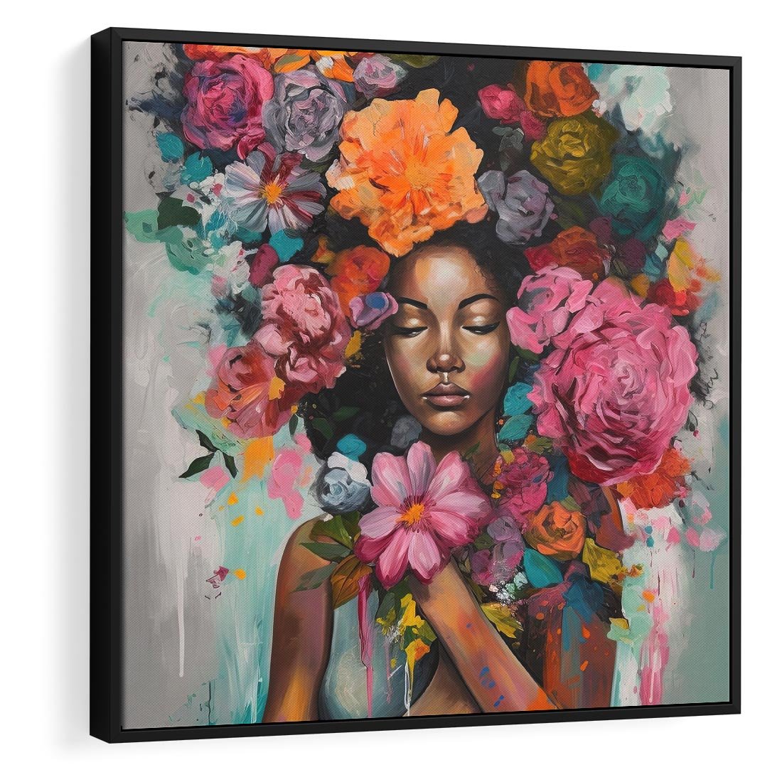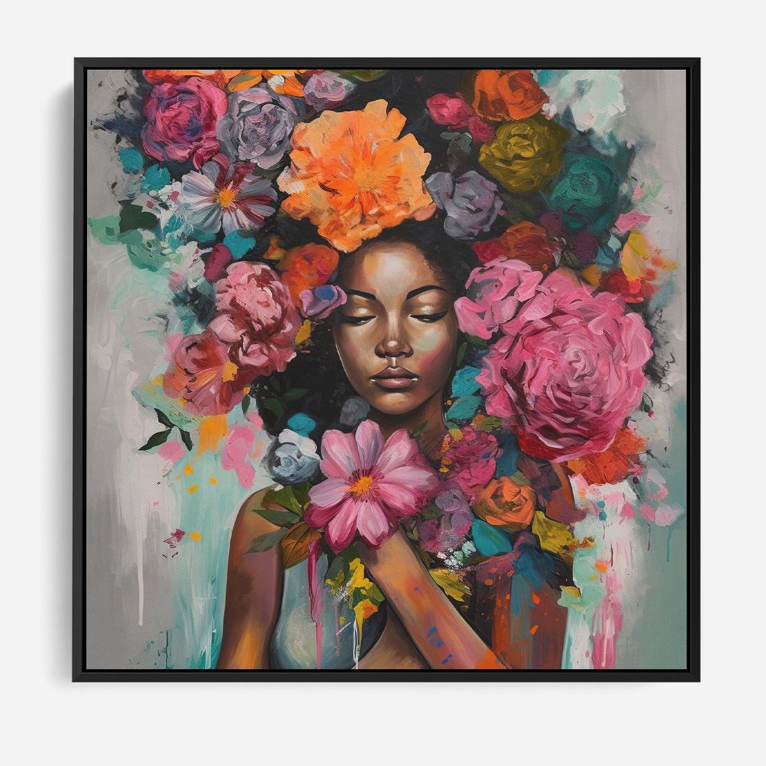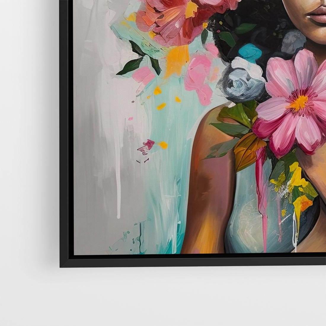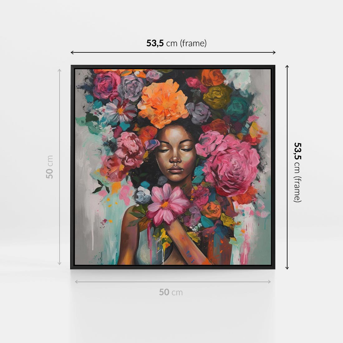 Obraz w ramie 50x50 - Z Głową w Kwiatach - obraz olejny, sztuka nowoczesna - rama czarna