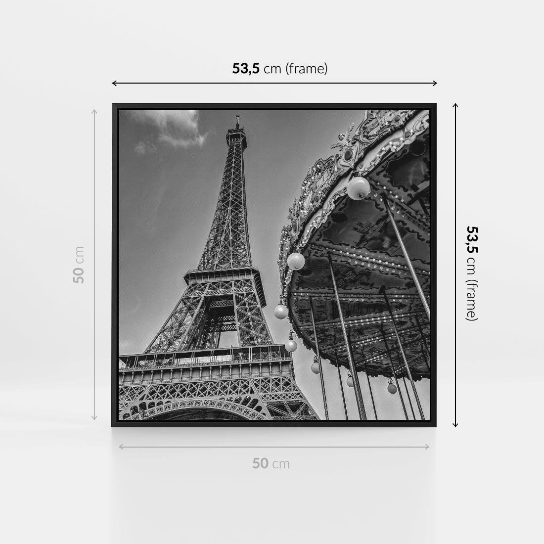Obraz w ramie 50x50 - Zabawa w Paryżu - czarno białe zdjecie, wieża eiffla - rama czarna