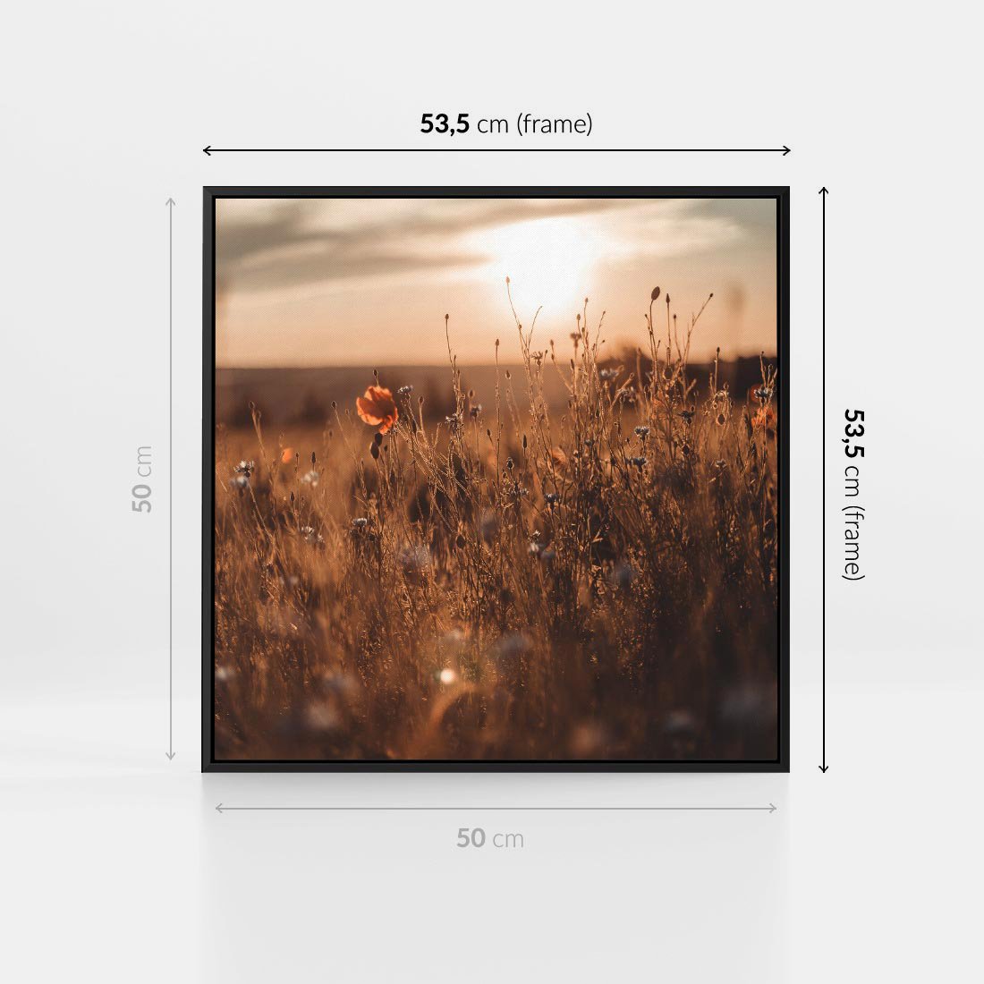 - Obraz w ramie 50x50 - Zachwyt zachodem słońca na łące