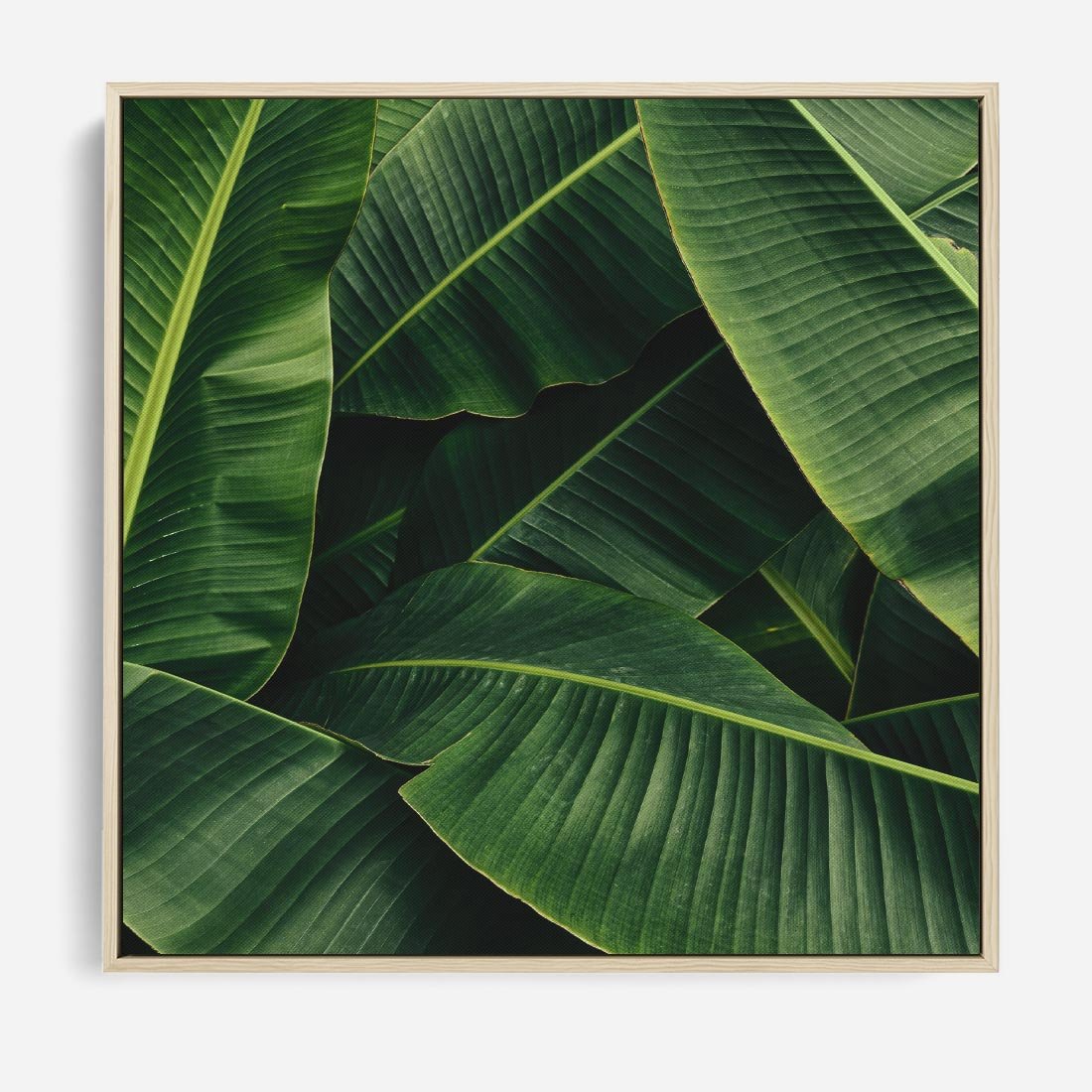 Obraz w ramie 50x50 - Zaklęta roślinna ekspresja - liście bananowca, gęsto ułożone - rama drewno