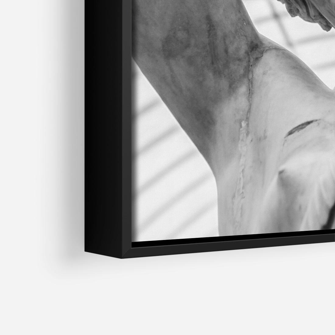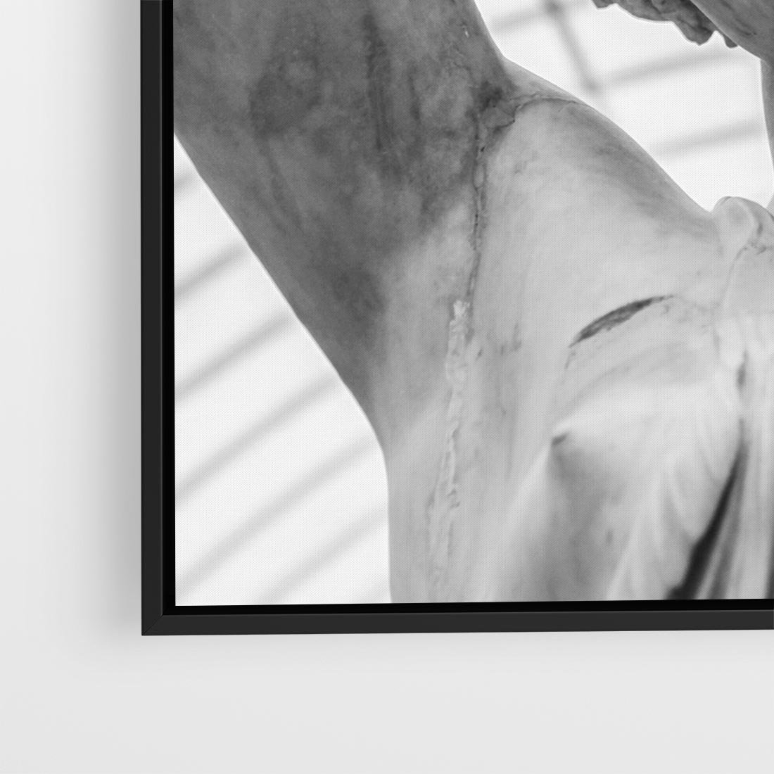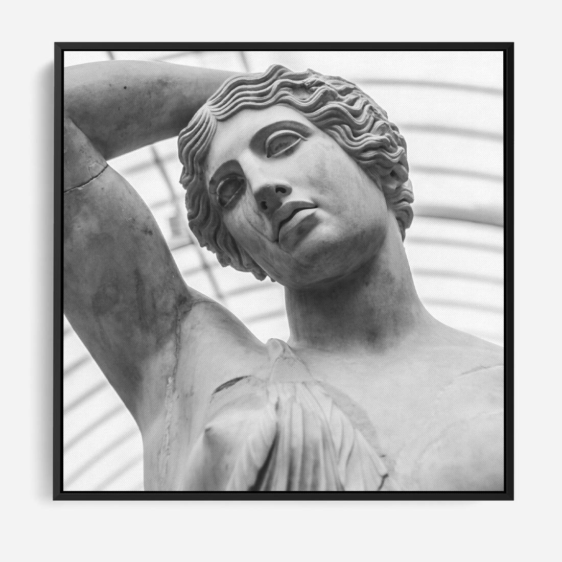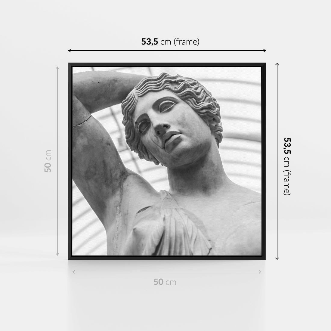Obraz w ramie 50x50 - Zaklęta w Kamieniu - antyczna rzeźba kobiety na fotografii, czarno biała - rama czarna